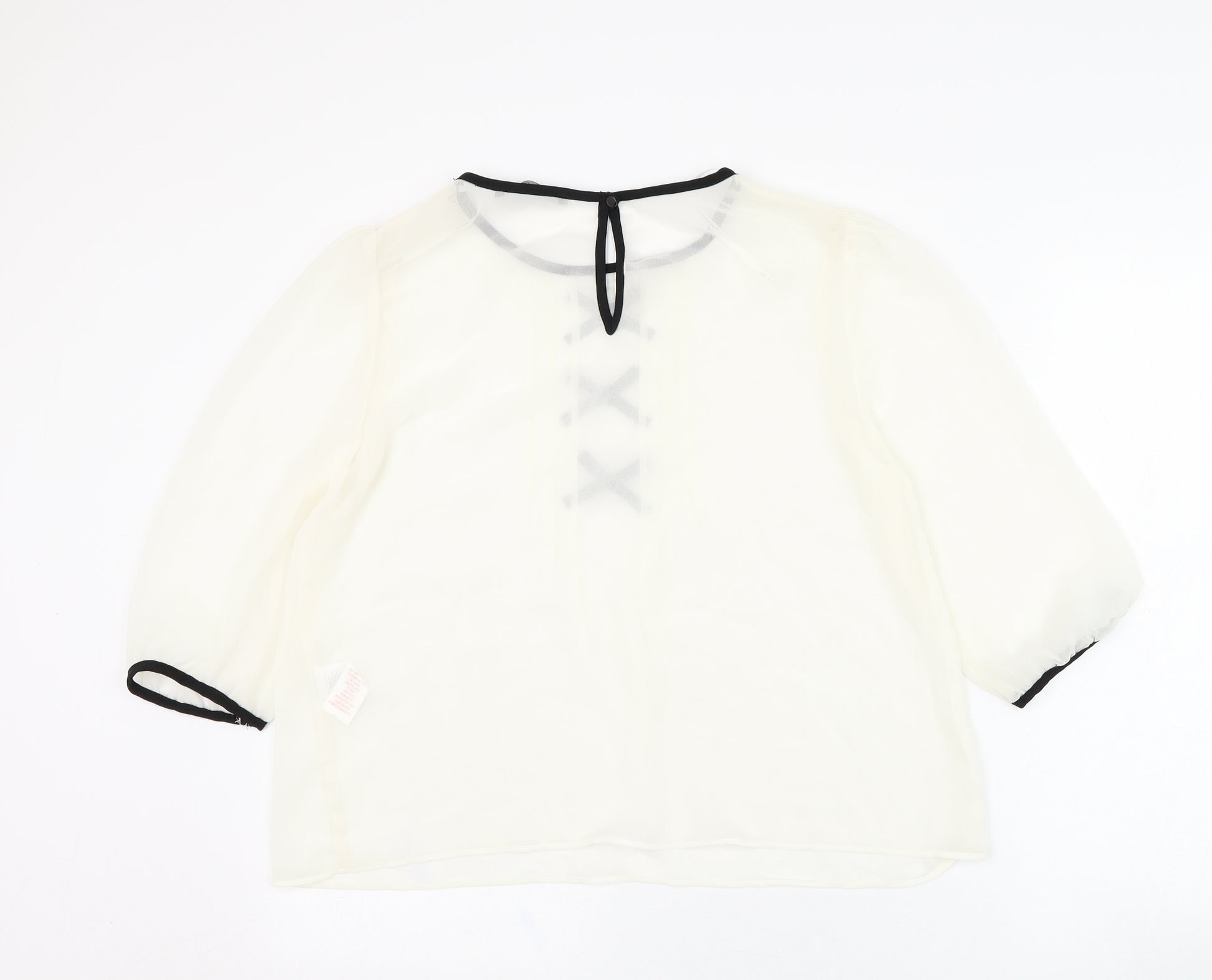 Womens Ivory Polyester Basic Blouse Size 16 Round Neck
