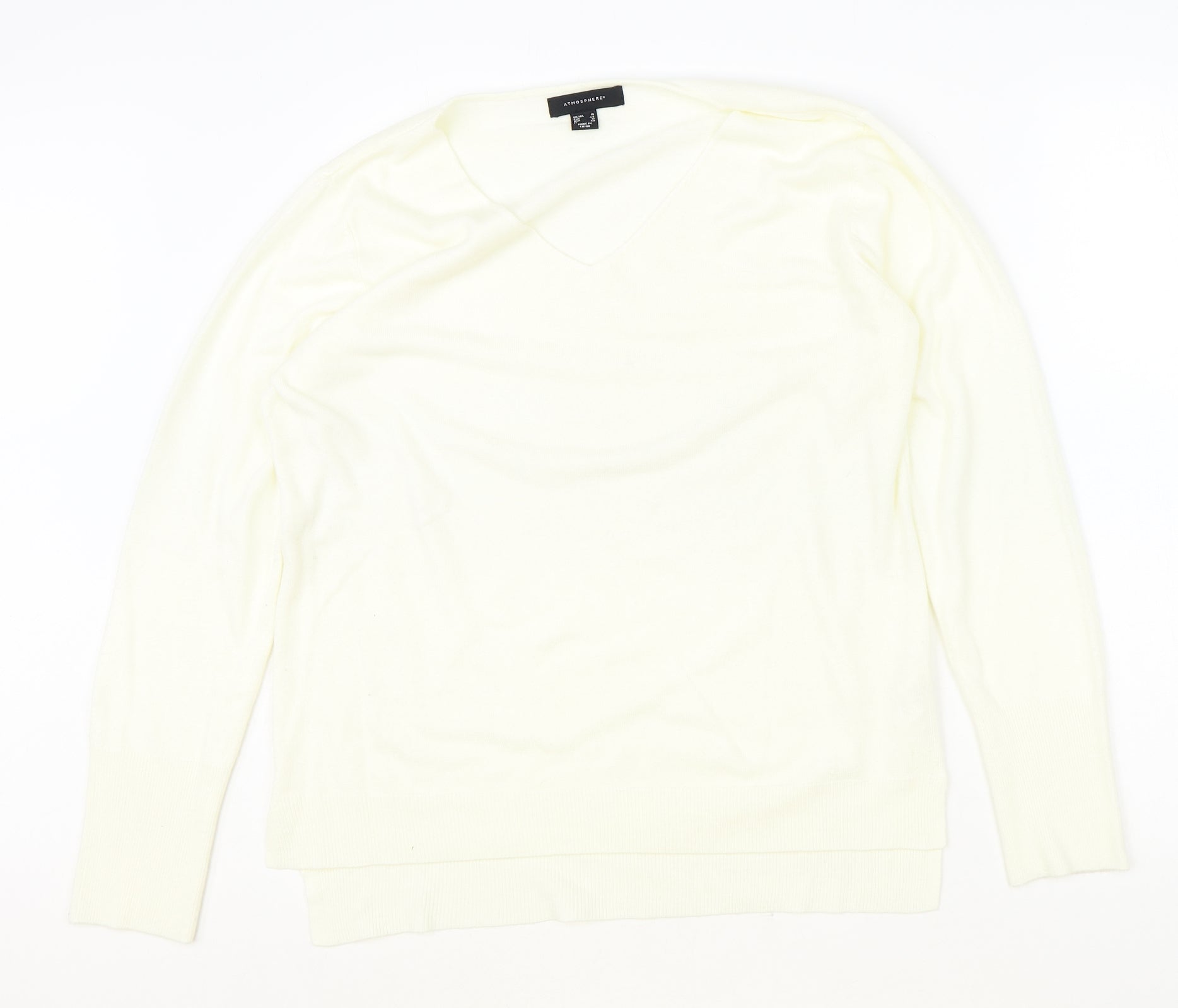 Womens Ivory Scoop Neck Acrylic Pullover Jumper Size 16