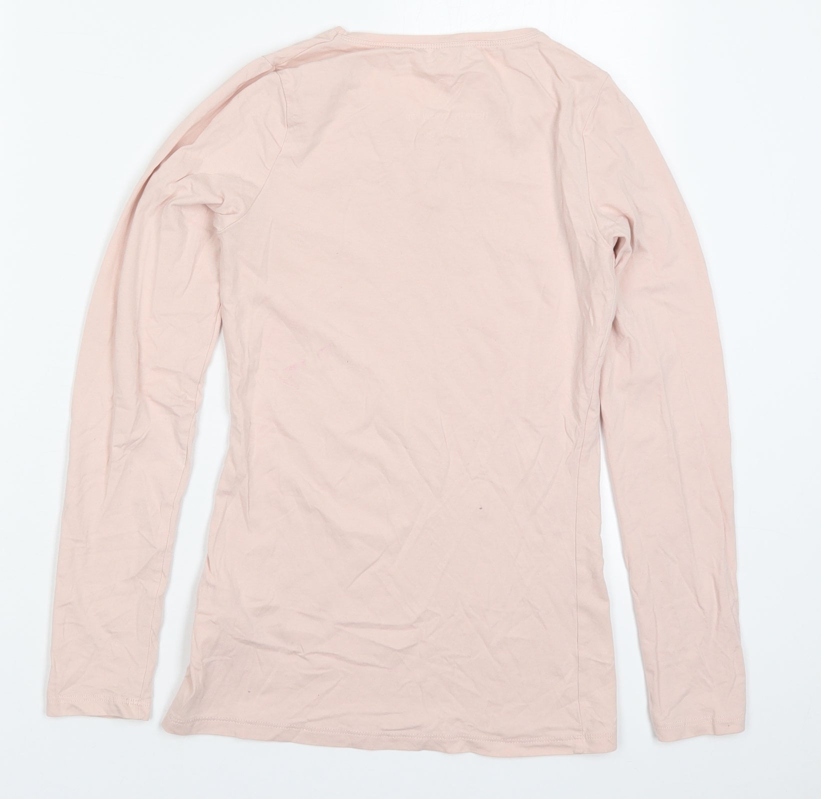 Womens Pink Cotton Basic T-Shirt Size 8 Round Neck