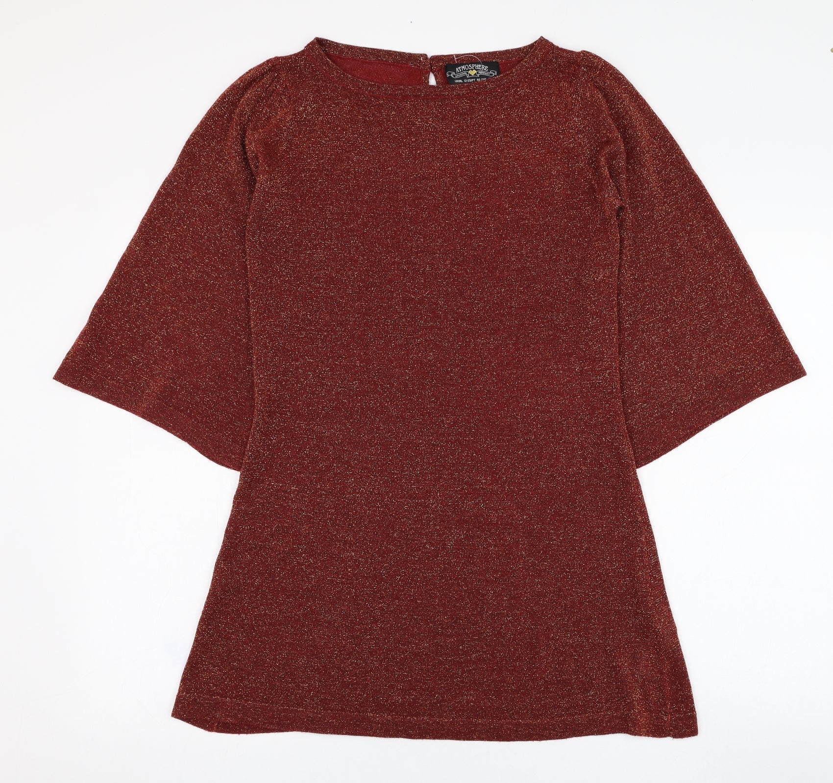 Womens Red Round Neck Acrylic Pullover Jumper Size 12