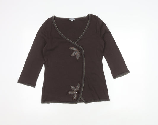 Regular price£6.25£625Regular priceUnit price / perSale price £6.25 GBPEvie Women's Black Beaded V-Neck Long Sleeve Cotton Top Size 10