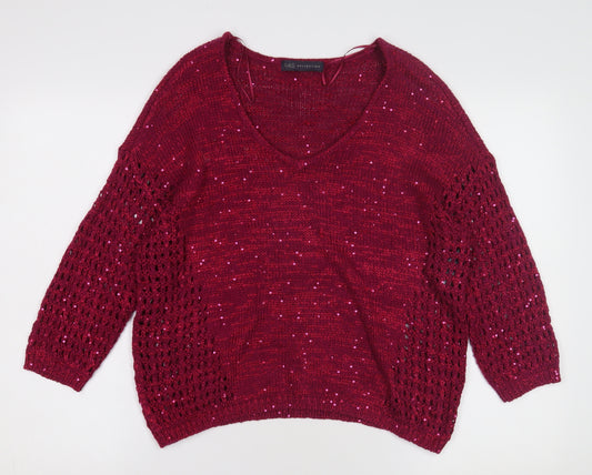 Regular price£14.75£1475Regular priceUnit price / perSale price £14.75 GBPMarks and Spencer Women’s Red V-Neck Lace Panel Long Sleeve Jumper Size 10