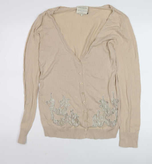Topshop Women’s Pink Crochet Button Cardigan Size 14 Cotton Knit