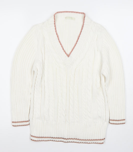 Regular price£22.75£2275Regular priceUnit price / perSale price £22.75 GBPKangol Womens Ivory Cable Knit V-Neck Cotton Jumper Size 16