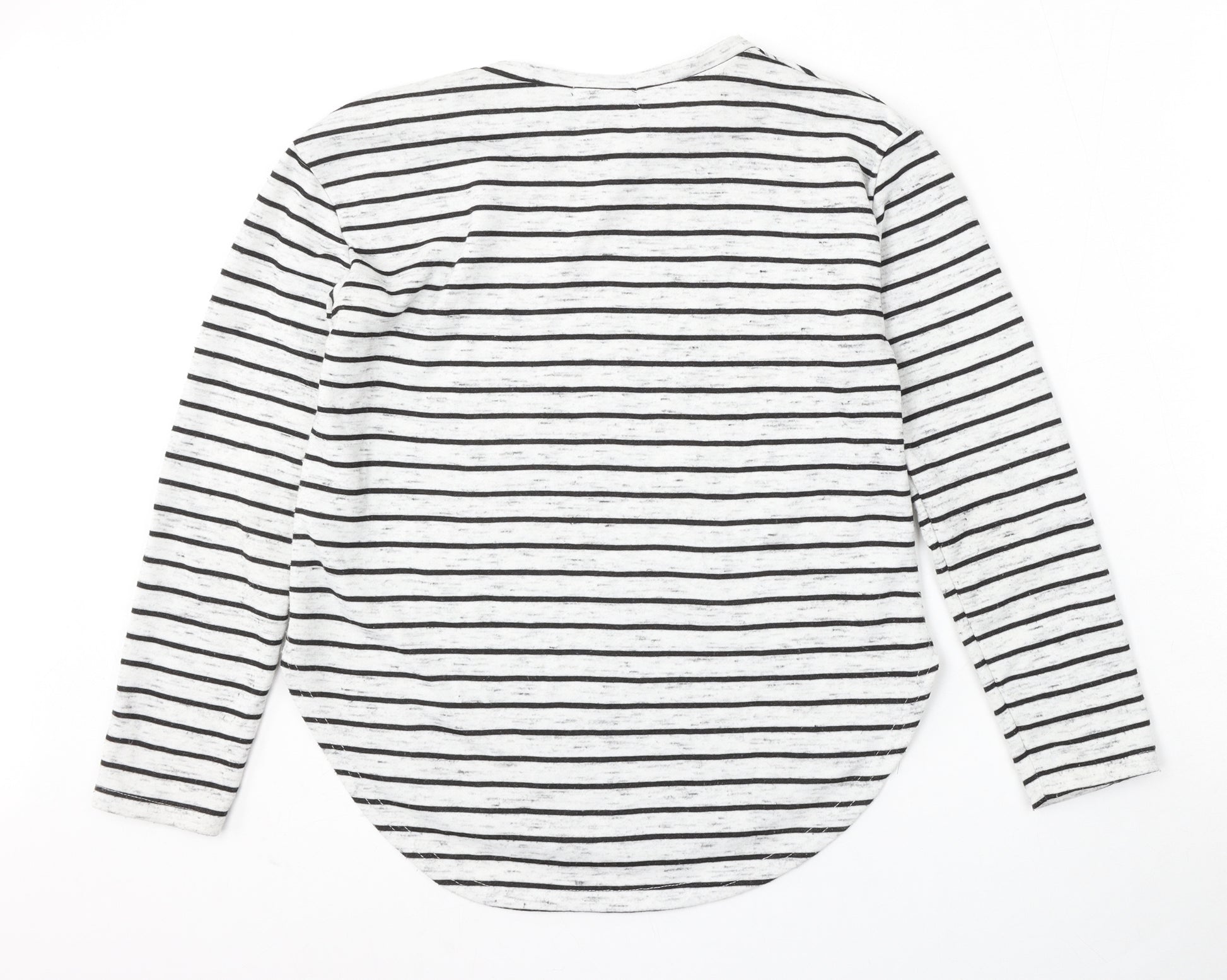 Womens White Round Neck Striped Polyester Pullover Jumper Size 10