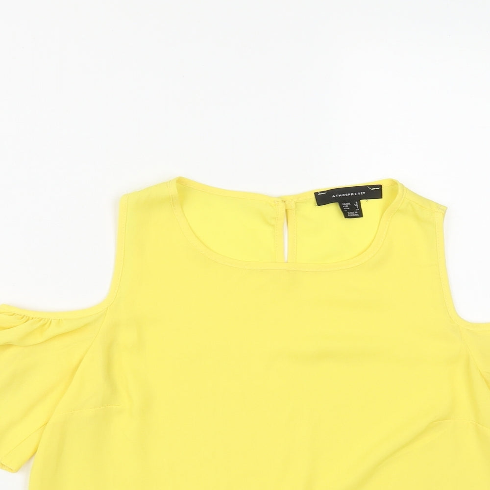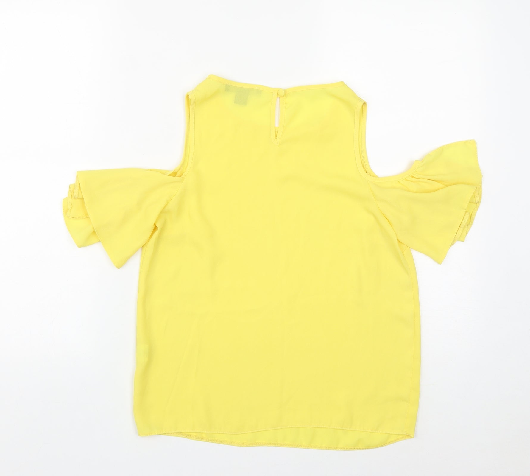 Womens Yellow Polyester Basic Blouse Size 6 Round Neck