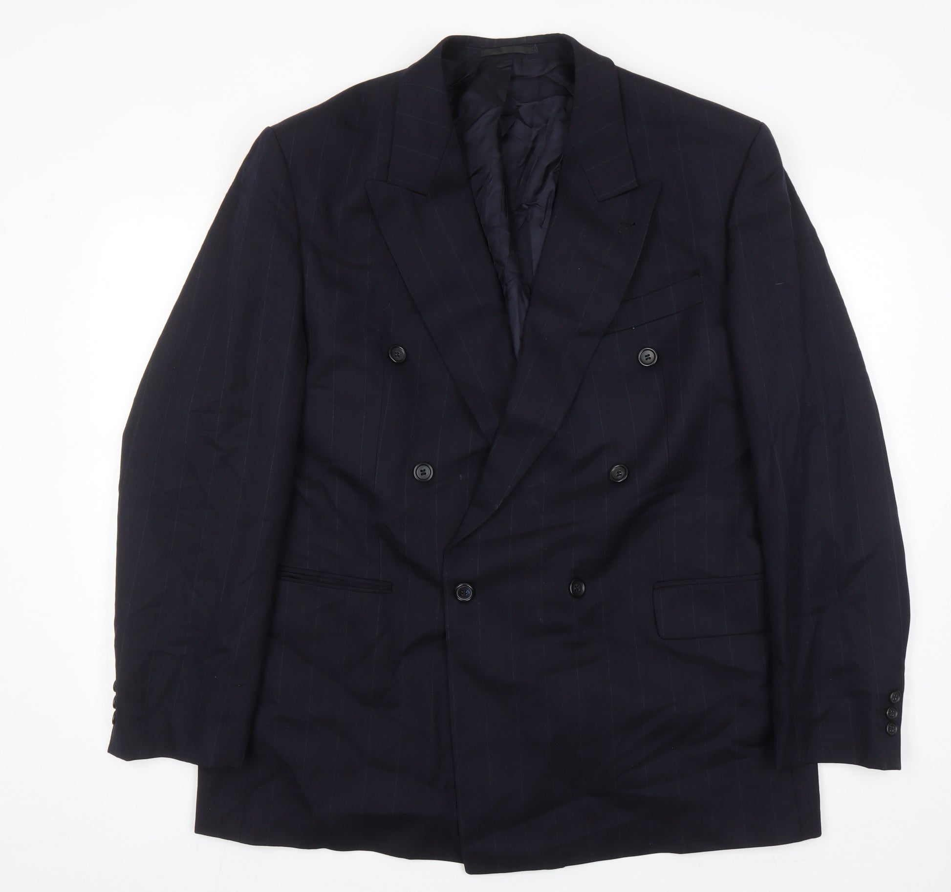 Elevate your style with this Austin Reed double-breasted blazer, perfect for both business and formal occasions. Crafted from premium wool and tailored with a regular fit, this blazer offers both comfort and sophistication. The peak lapel and single vent add classic details to its elegant design. Made in Germany, it showcases a subtle striped pattern, making it a versatile addition to your wardrobe. The lining is made of viscose, ensuring a comfortable wear. Ideal for autumn and winter seasons, it is a stylish choice for the discerning gentleman.