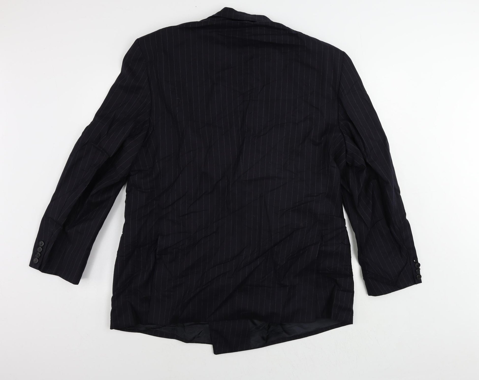Mens Blue Striped Wool Jacket Suit Jacket Size 48 Regular