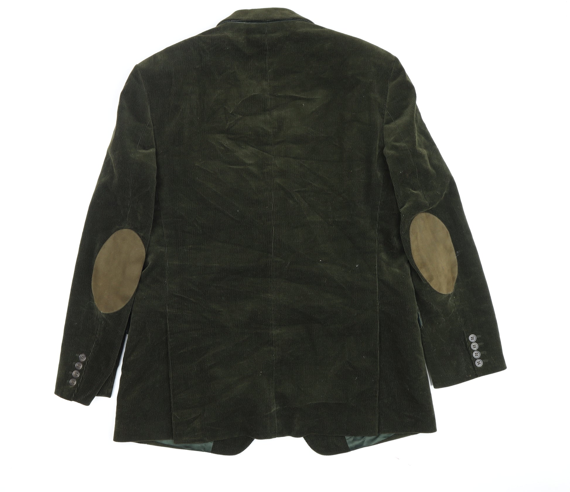 Upgrade your wardrobe with this timeless piece from Austin Reed. Crafted with precision, this men's blazer in a rich green hue showcases the elegance of corduroy, offering a sophisticated touch to any outfit. Designed for the modern man, it features a comfortable regular fit that ensures ease of movement without compromising on style.The blazer's single-breasted cut and notch lapel exude classic charm, making it a versatile choice for various occasions. It includes a practical single-vented back and a three-button front, perfect for layering over shirts and jumpers alike. The four-button detail on the sleeves adds an extra element of refinement.Lined with soft polyester, this blazer ensures a smooth, comfortable fit against the body. Though it reflects gentle use, it remains in excellent condition with no visible imperfections, promising durability and long-lasting wear. This piece is ideal for those seeking a blend of tradition and modern flair.Pair it with tailored trousers for a business-casual look or wear it with jeans for a relaxed, yet polished appearance. A staple in any gentleman's collection, this Austin Reed blazer is as stylish as it is functional, blending the best of comfort and sophistication. Secure your piece of timeless elegance today.