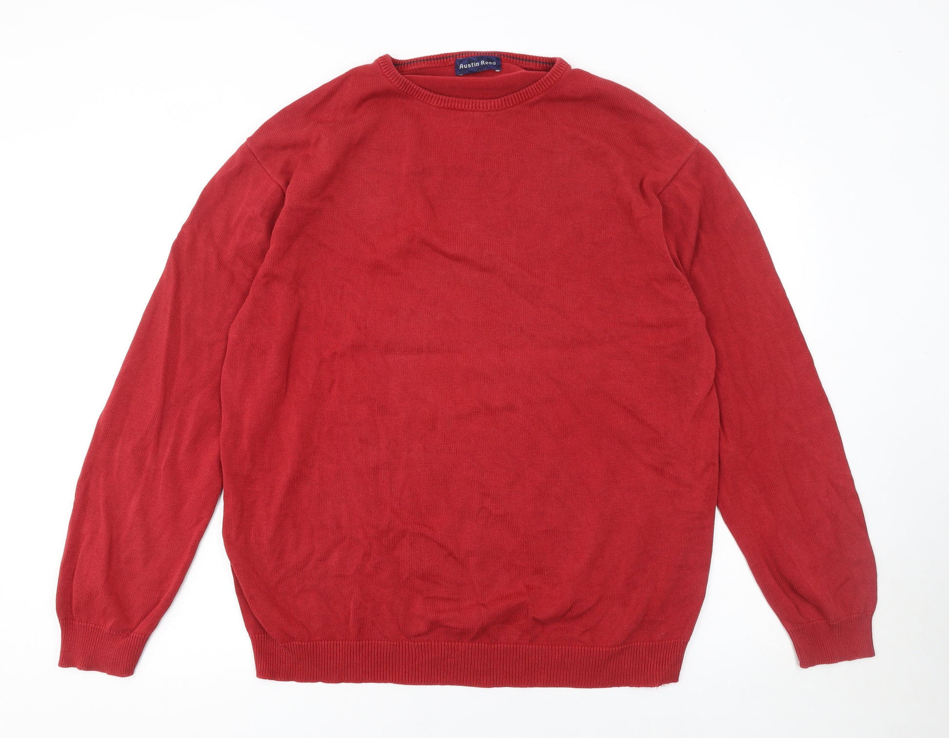 Men's Red XL Cotton Crew Neck Pullover Jumper