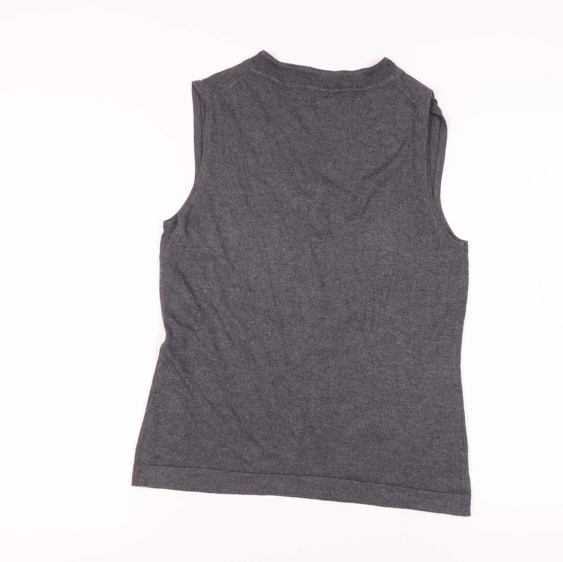 Elevate your casual wardrobe with this sophisticated Austin Reed women's vest in a versatile shade of grey. Crafted for comfort and style, this vest features a flattering V-neckline and a regular fit, making it an ideal choice for layering or wearing as a standalone piece. The blend of materials—viscose, nylon, and cashmere—provides a luxuriously soft feel while ensuring durability and warmth for autumn and winter seasons. This sleeveless vest is perfect for adding a touch of elegance to your everyday attire, whether you're heading to a casual outing or simply relaxing at home. Its timeless grey colour allows for effortless pairing with a variety of outfits and accessories. Available in size M, this vest is designed for women who appreciate both style and comfort. The excellent condition of the garment ensures you can enjoy it for many seasons to come, as there are no visible signs of wear. Priced attractively, this vest promises to be a favourite addition to your wardrobe. Embrace the blend of quality and style with Austin Reed's elegant offering, perfect for casual occasions and beyond.
