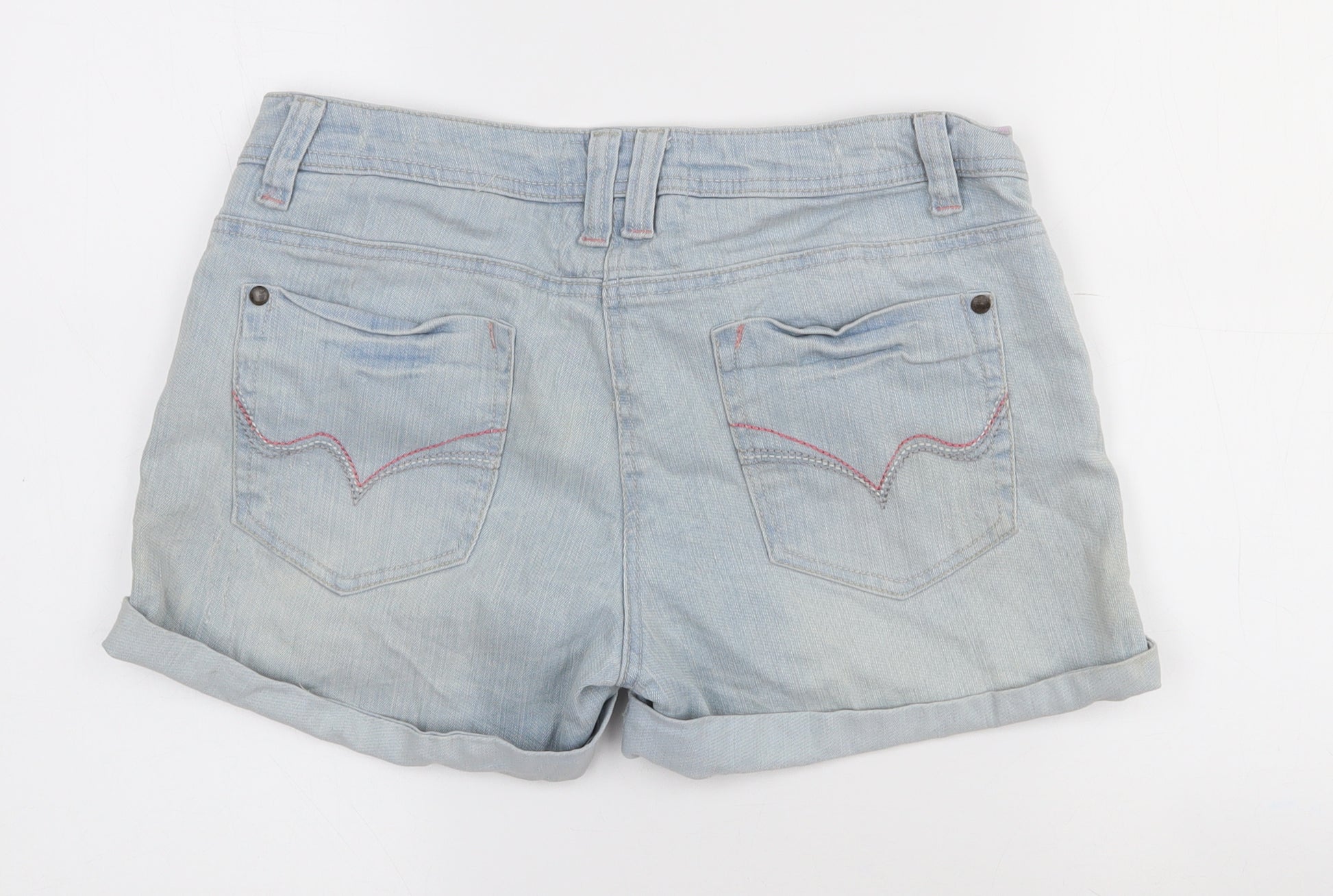 Womens Blue Cotton Hot Pants Shorts Size 12 L3 in Regular Zip