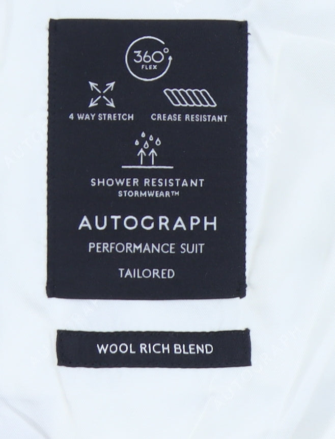 Elevate your wardrobe with the sophisticated Autograph Men's Beige Blazer, crafted from a luxurious wool-rich blend. This performance suit jacket in size 2XL combines modern elegance with practical functionality, making it an essential addition for any stylish gentleman. Featuring a regular fit, this single-breasted blazer offers a classic silhouette with its two-button front and notch lapel. The double-vented back adds a touch of contemporary flair while ensuring maximum comfort and ease of movement. Crafted with a thoughtful mix of 53% wool, 43% polyester, and 4% elastane, the blazer provides the perfect balance of softness, structure, and stretch. Its 4-way stretch capabilities along with the crease-resistant fabric ensure you look sharp all day long, whether in the office or at a formal event. The jacket's inner lining blends polyester and viscose for added comfort, while the exterior boasts shower-resistant stormwear technology, keeping you prepared for unexpected weather. With four-button sleeves and a regular jacket length, this piece showcases meticulous attention to detail. Ideal for a variety of occasions, from business meetings to special events, the elegant beige tone adds versatility and sophistication to any ensemble. Experience the luxurious feel and enhanced functionality of the Autograph Blazer, perfect for elevating your wardrobe and making a memorable impression. Brand new with tags, this blazer offers impeccable craftsmanship and style that stands out effortlessly in both formal and casual settings.