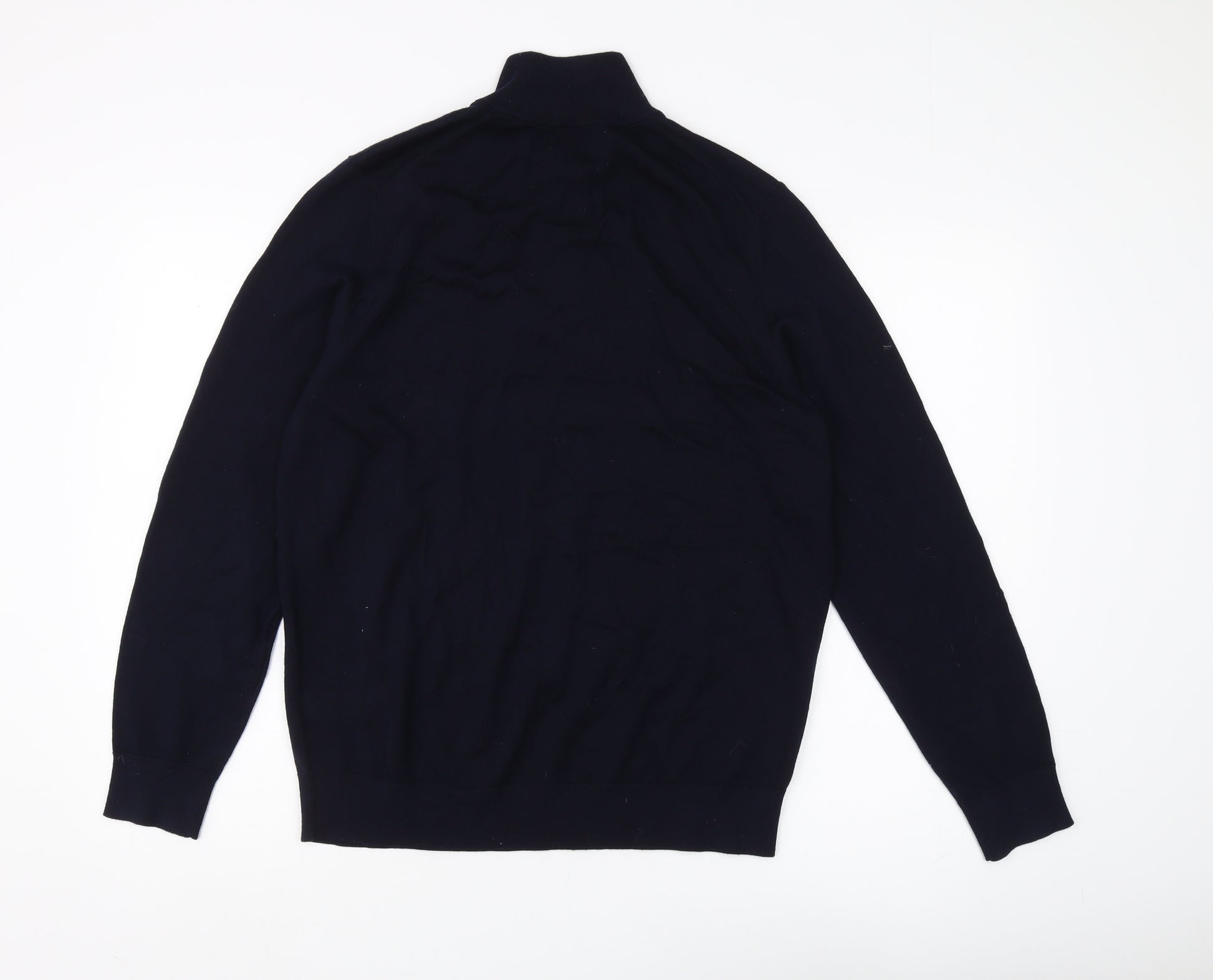 Introducing the Autograph Men's Black Full Zip Wool Jumper, a versatile addition to your wardrobe that's perfect for autumn and winter. Crafted from luxurious extra fine merino wool, this jumper offers a combination of warmth and style, making it ideal for casual occasions. The high neck and full zip design provide both comfort and practicality, allowing you to adjust your look effortlessly. The sleek black colour ensures it complements any outfit, while the regular fit offers ease of movement. With its long sleeves and tight-knit construction, this jumper is designed to keep you cosy on chilly days. Although it falls within the excellent condition category, there's no visible wear, ensuring a refined appearance. Whether heading to a casual outing or layering under a jacket, the Autograph wool jumper is your go-to choice for a sophisticated, timeless look.