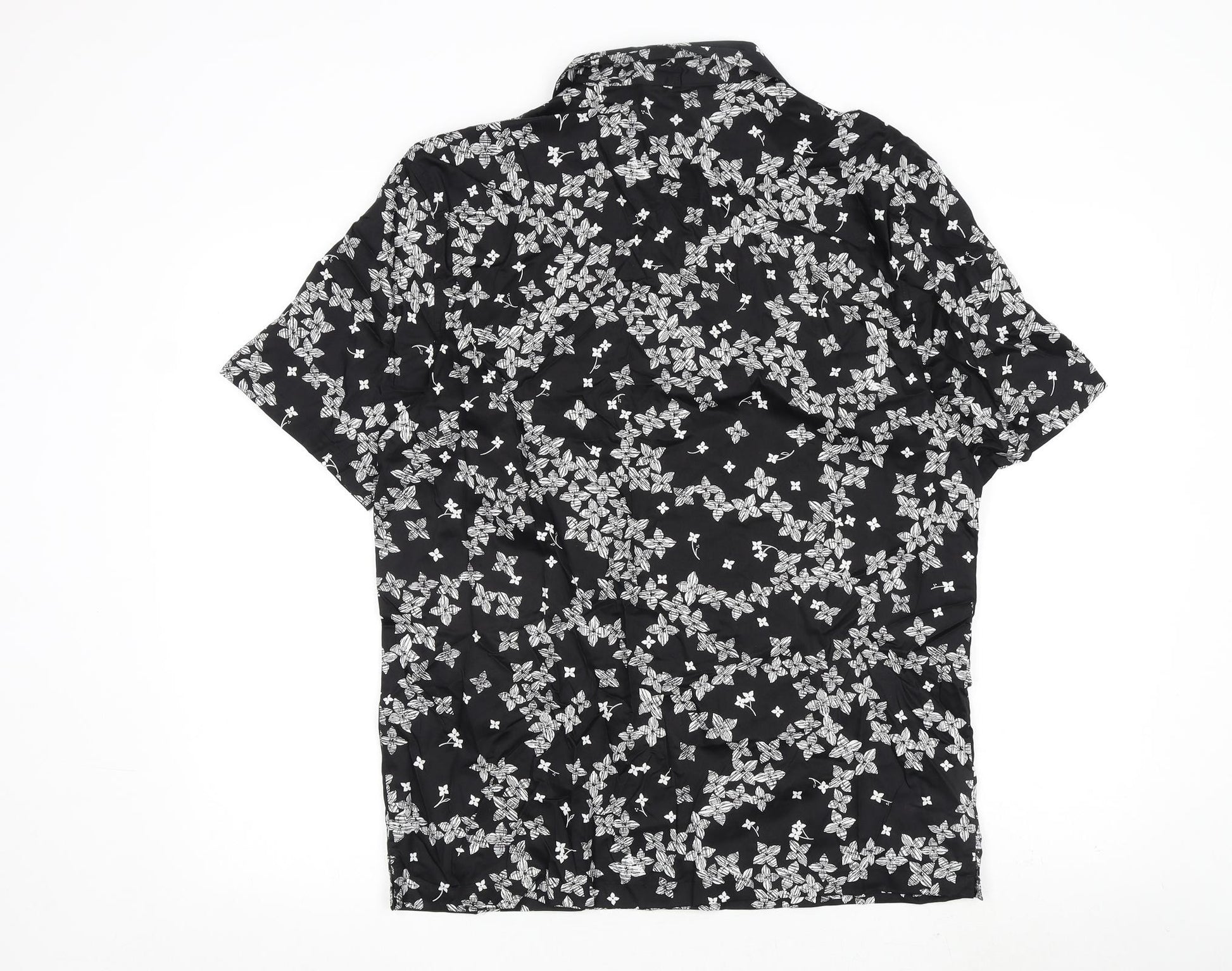 Mens Black Geometric Cotton Button-Up Size M Collared Button