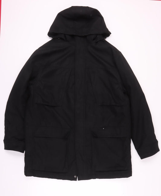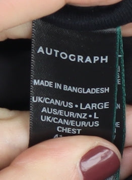 Stay cosy and stylish with this Autograph Men's Black Puffer Jacket in size Large. Designed for the cooler autumn and winter months, this jacket combines fashion and functionality effortlessly. Crafted from a blend of polyester and cotton, this mid-length jacket offers comfort and durability. The sleek black colour ensures versatility, making it a perfect choice for any casual occasion. Featuring a snap closure for easy wear, the jacket comes with practical features such as lined interior and convenient pockets, ideal for carrying essentials on the go. The regular fit and no pattern design give it a timeless appeal. The jacket has minor wear and marks, indicating its previously loved nature, but it retains its charm and utility. This lightweight jacket is machine washable for easy maintenance, providing convenience for everyday use. Whether you're heading to work or out for a casual outing, this puffer jacket complements any outfit while keeping you warm. Embrace comfort and style with this essential wardrobe addition.