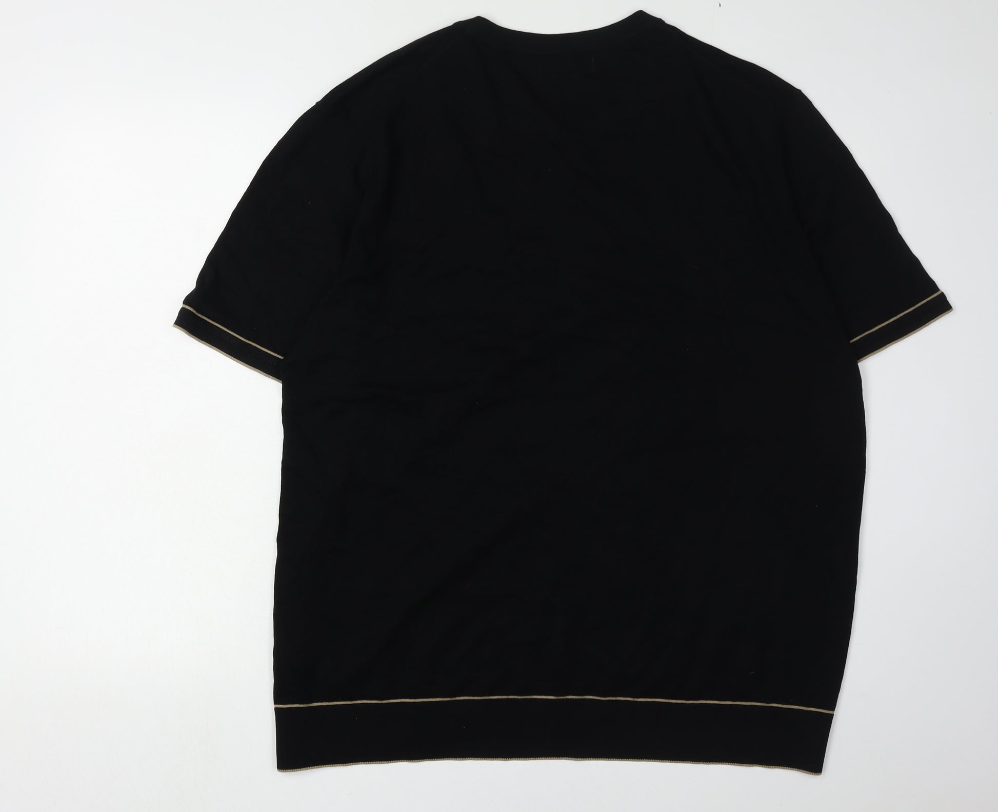 Discover timeless elegance and supreme comfort with this Autograph Men's Black Pullover Jumper. Crafted for those who appreciate simplicity and quality, this regular-fit jumper in size 3XL is ideal for casual occasions, offering versatility and effortless style. Made from a luxurious blend of silk and cotton, this knit pullover ensures a soft touch against the skin, providing a comfortable wearing experience. The sleek black hue offers a classic appeal that pairs seamlessly with any wardrobe item, from jeans to smart trousers. Featuring a crew neckline and short sleeves, this jumper is perfect for layering or wearing on its own during the milder months. Whether you’re dressing for a laid-back day or adding a touch of refinement to your outfit, this jumper is an easily adaptable piece. Enhanced with subtle gold accents along the edges, this garment adds a hint of sophistication to your look without being overstated. Designed by Autograph, this jumper embodies a perfect blend of contemporary design and classic appeal. Embrace sleek simplicity and redefine your casual wardrobe with this exceptional piece. Add this essential to your seasonal staples for a touch of refined elegance. Ideal for those who prefer everyday luxury, this jumper is a smart investment for any style-conscious man looking to elevate his casual collection.