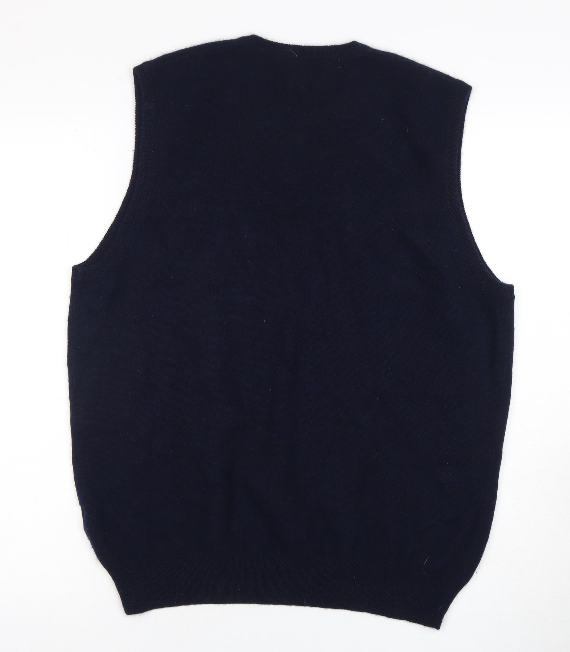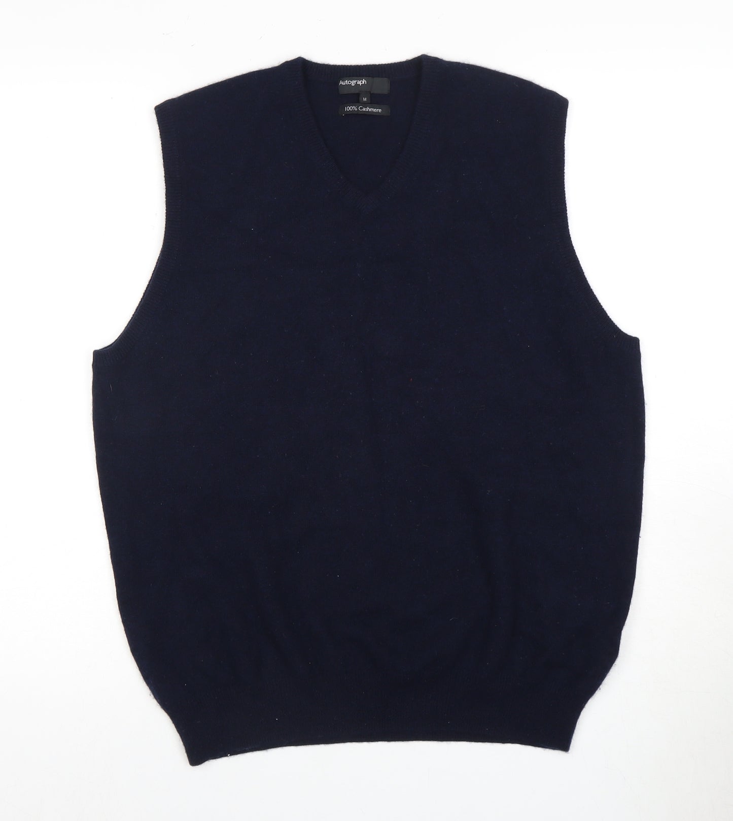 Upgrade your casual wardrobe with this luxurious men's vest from Autograph. Crafted entirely from soft and cosy cashmere, this sleeveless jumper provides exceptional warmth and comfort. It comes in a versatile medium size in a classic blue hue that effortlessly complements any attire. Ideal for any season, it features a stylish V-neckline and a smooth knit design that exudes timeless elegance. Perfect for layering over a shirt, this vest is a staple piece for both work and play. Experience the unparalleled softness of cashmere and enjoy the lightweight feel every time you wear it. Pair it with jeans for a casual outing or dress trousers for a more sophisticated look. Despite being in excellent condition, this item is offered at a competitive price. Indulge in this cashmere vest and make it a valuable addition to your collection.