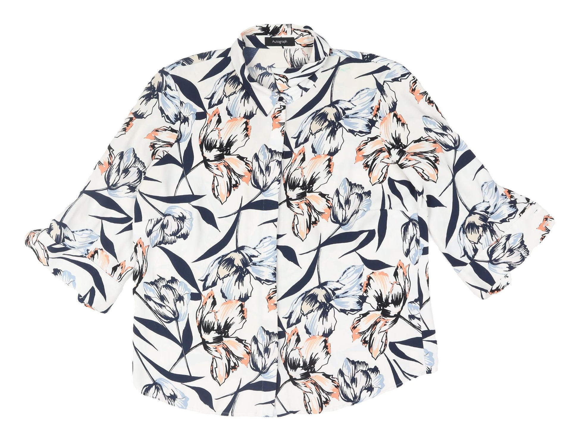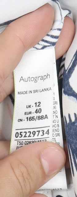 Add sophistication to your wardrobe with this Autograph women's blouse. Crafted from 100% polyester, this lightweight woven blouse features a vibrant multicoloured floral pattern, perfect for casual spring and summer outings. The collared neck and classic fitted 3/4 sleeves enhance its elegance, while the button closure adds a touch of formality. Available in UK size 12, this regular fit, machine washable blouse offers comfort and style for any occasion, making it a valuable addition to your fashion collection.