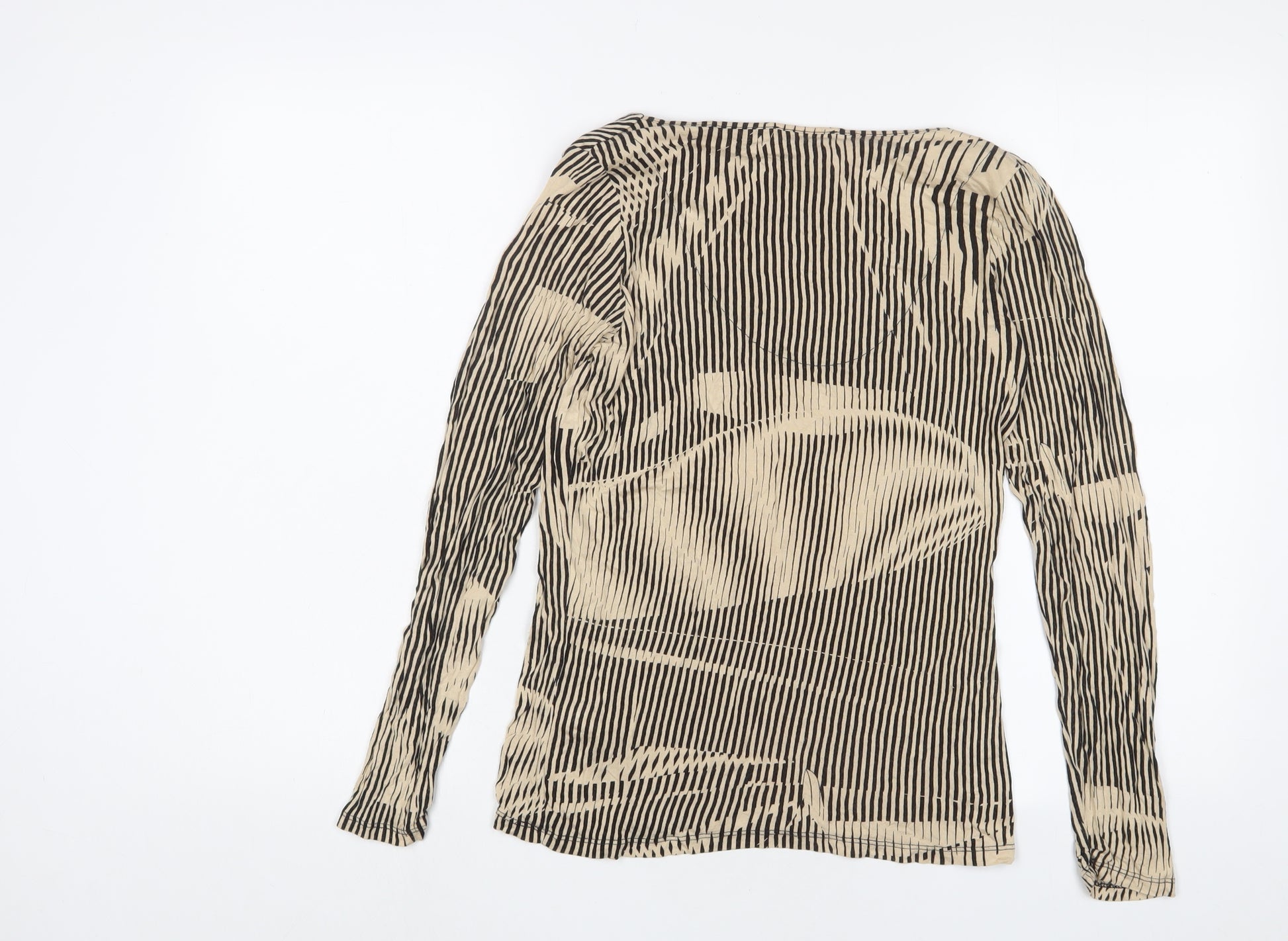 Womens Beige Striped Viscose Basic T-Shirt Size 10 Cowl Neck