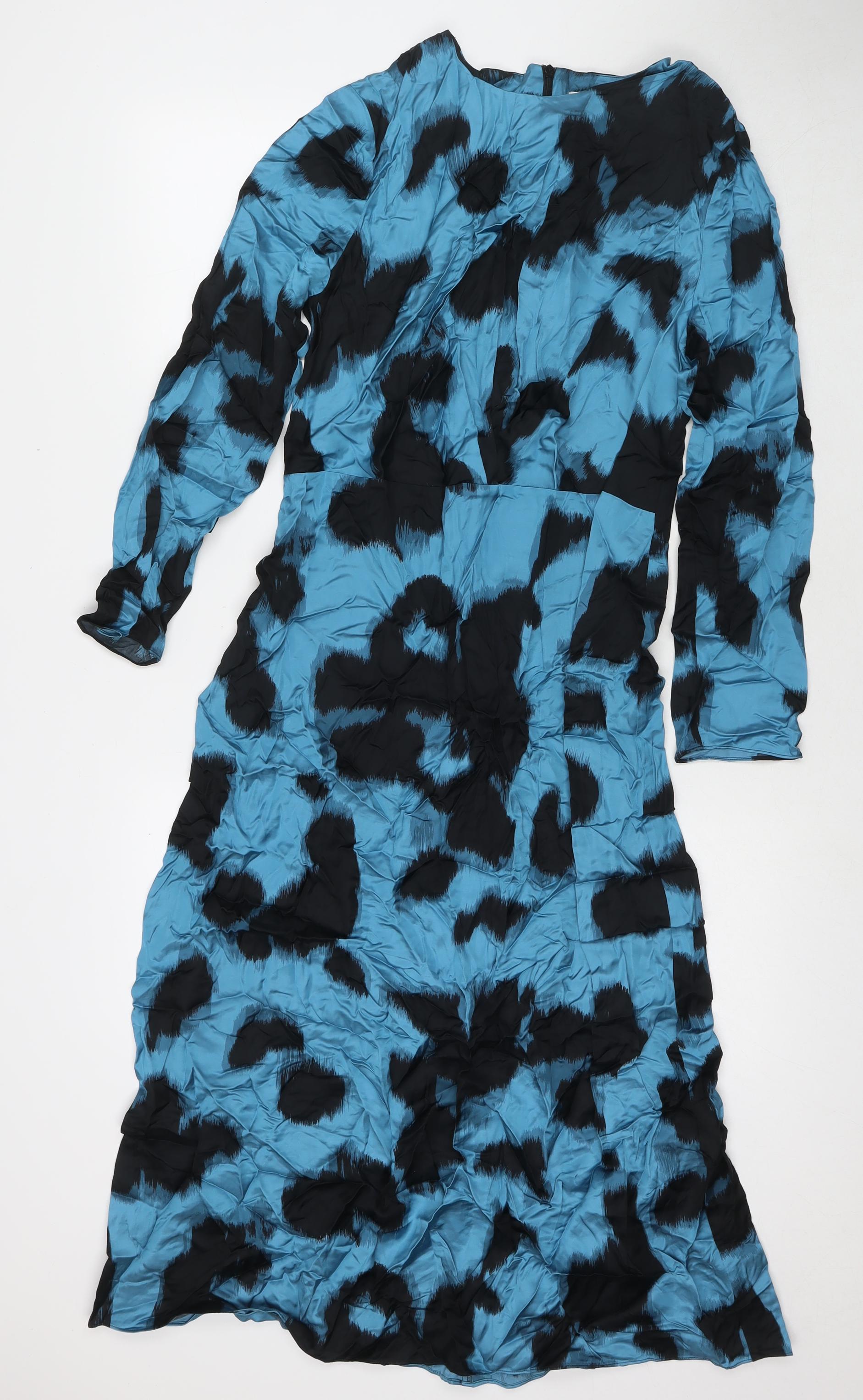 Womens Blue Geometric Viscose Maxi Size 12 Round Neck Zip