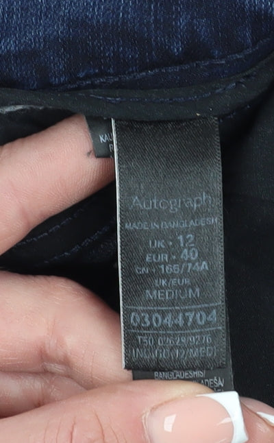 Step into style and comfort with these Autograph Women's Blue Jeans in Size 12, perfect for everyday wear. Crafted from high-quality denim, primarily composed of 98% Cotton and 2% Elastane, these jeans offer both durability and flexibility. The regular fit ensures a comfortable and flattering silhouette, making them an excellent choice for diverse body types. The mid-rise design provides a balance between style and comfort, sitting naturally on the waist. These jeans feature a classic 5-pocket design, offering ample space for small essentials, and an easy button and zip closure for a secure fit. The medium fabric wash adds a touch of sophistication, making them versatile for both casual outings and more polished occasions. Whether paired with a favourite top or layered with a jacket, these jeans promise to be a staple throughout all seasons: Autumn, Spring, Summer, and Winter. Perfectly suitable for machine washing, they ensure effortless care, maintaining their look and feel over time. Despite being pre-owned, they are in excellent condition, showing no visible signs of wear or damage. This makes them not only a stylish choice but also an economical one. Add these Autograph jeans to your wardrobe for a reliable and chic fashion option that's ready for any occasion.