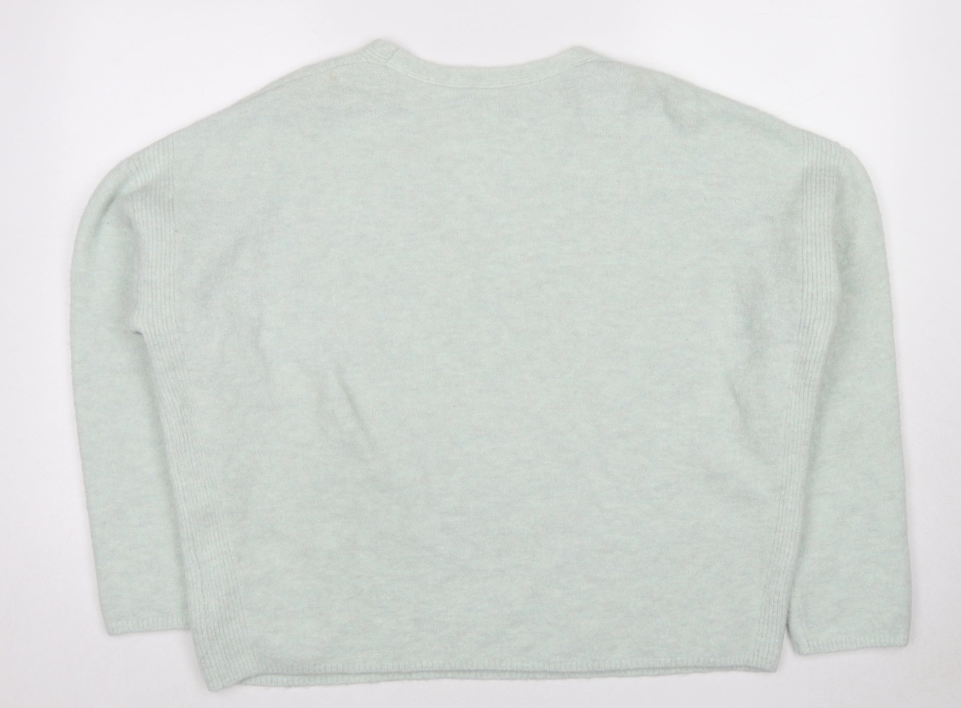 Womens Blue V-Neck Acrylic Pullover Jumper Size 16