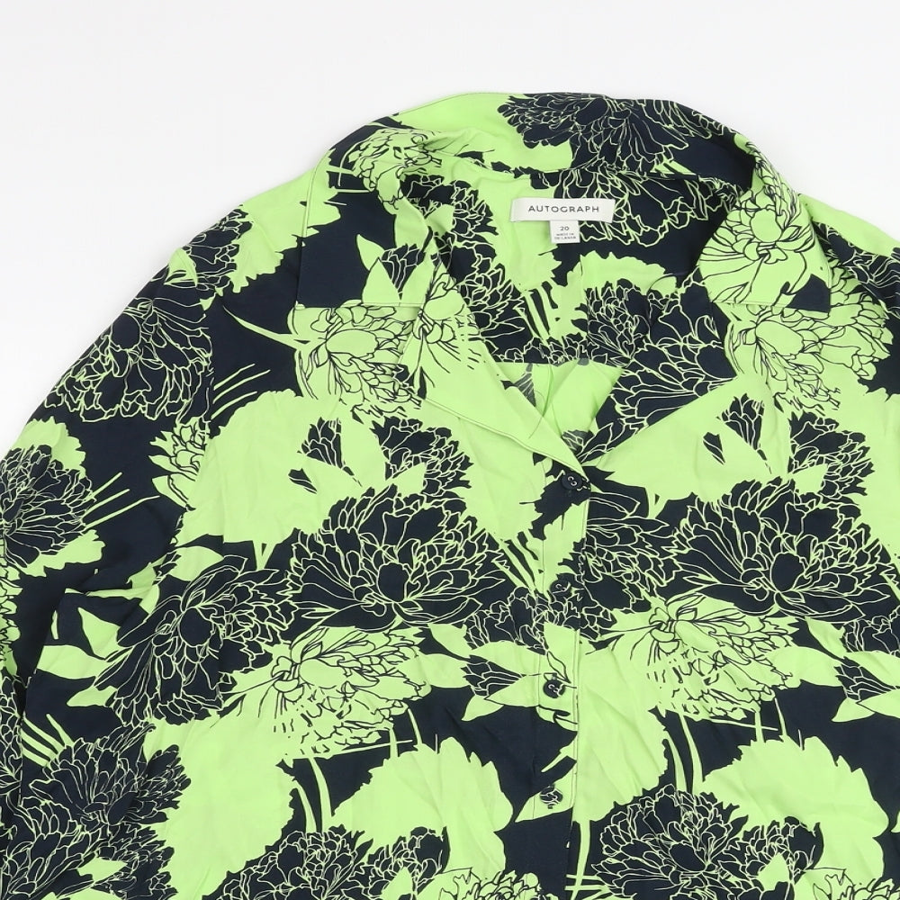 Womens Green Floral Viscose Basic Blouse Size 20 V-Neck