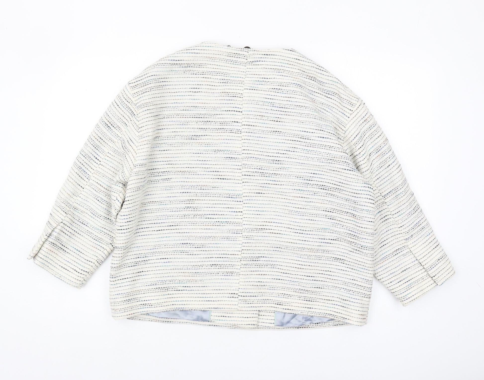 Elevate your wardrobe with this elegant Autograph Women's Mid-Length Jacket, perfect for casual outings in spring and autumn. Designed with a modern striped pattern in a subtle multicoloured palette, this jacket brings a touch of sophistication to any outfit. Crafted from a luxurious blend of cotton, viscose, polyester, and polyamide, it offers comfort and style effortlessly. The jacket features a smooth lining made from viscose and acetate, ensuring a comfortable fit throughout the day. With its regular fit, this versatile piece fits beautifully, flattering the figure while allowing ease of movement. The long sleeves provide added coverage and make it a suitable choice for those cooler days. Designed with practicality in mind, the jacket includes well-positioned pockets to carry your essentials with ease. Although it demands professional dry cleaning, this ensures long-lasting quality and maintenance of its original charm. Perfect for casual occasions, whether you're heading to a brunch or a day out shopping, you'll find this Autograph jacket a reliable go-to in your collection. Its understated elegance makes it a timeless addition that pairs well with simple trousers or your favourite jeans. In excellent condition with no visible damage or wear, this piece offers exceptional value and style. Don't miss out on adding this versatile and chic jacket to your collection.