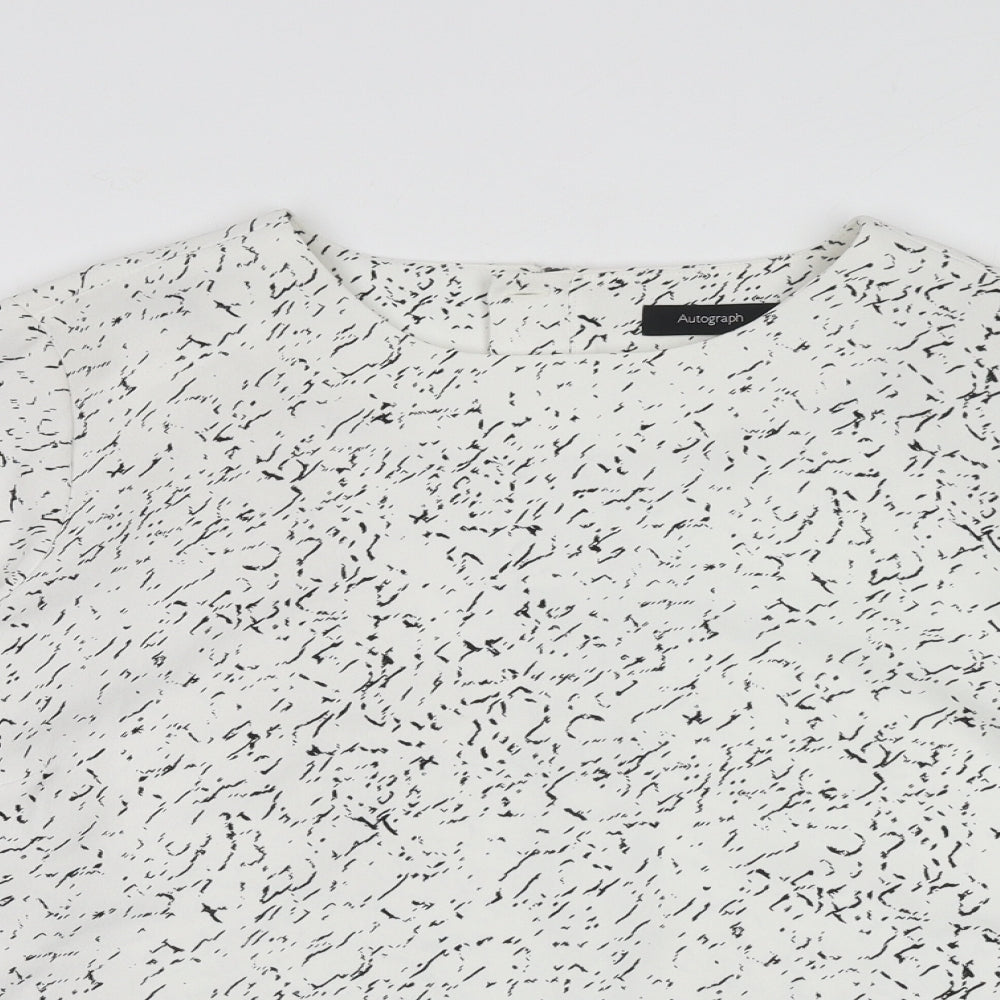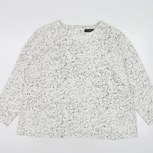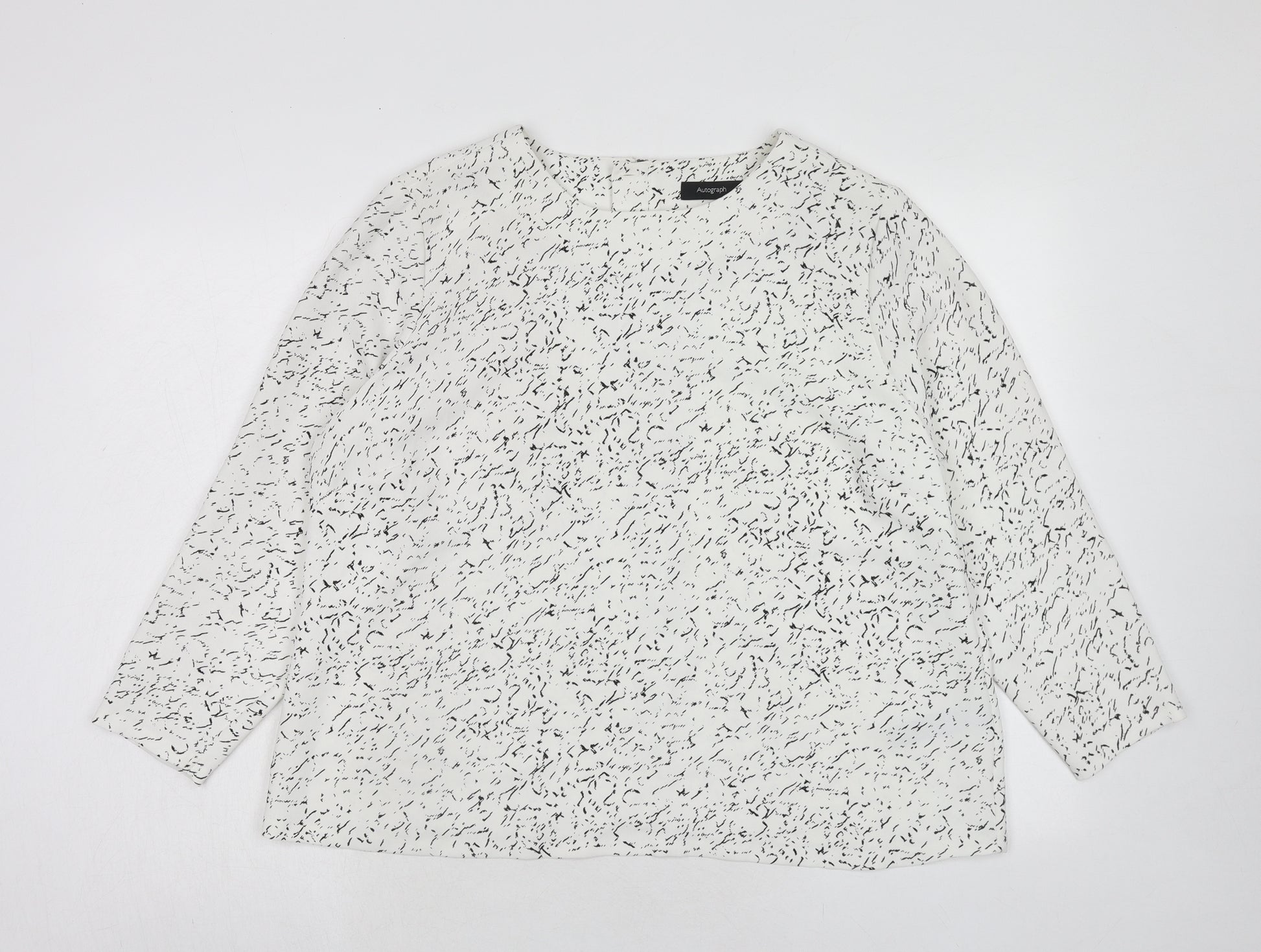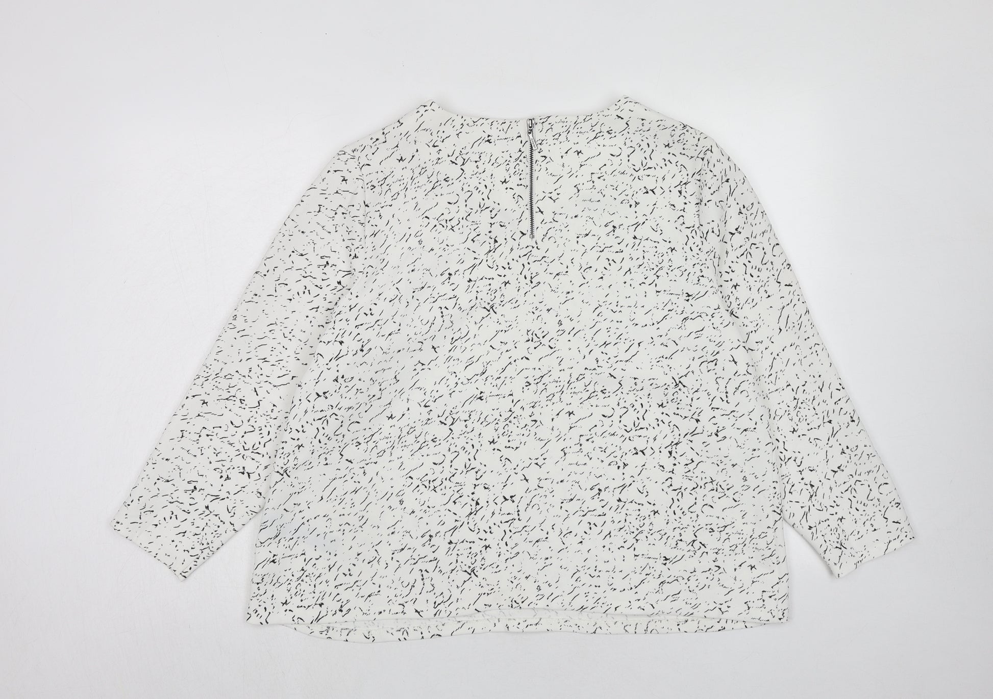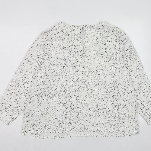 Womens White Geometric Polyester Basic Blouse Size 18 Round Neck