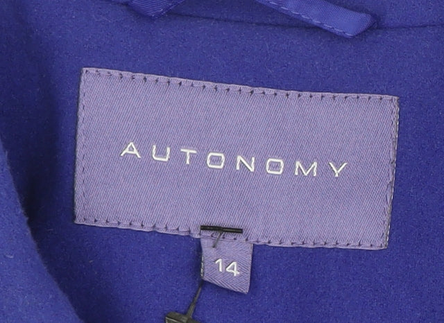 Step out in timeless elegance with this stunning royal blue pea coat from Autonomy, designed for the modern woman who values both comfort and classic style. Crafted in a soft polyester-viscose blend with a touch of elastane for ease of movement, this coat offers a beautifully tailored silhouette that flatters the figure while ensuring lasting comfort. The rich cobalt blue colour adds a bold, contemporary touch that makes it easy to pair with both professional and casual outfits. Featuring a double-breasted button closure, notched collar and functional front pockets, it combines everyday practicality with impeccable design. The short length keeps it versatile, ideal for layering over dresses or trousers through autumn and winter. Fully lined in smooth polyester, it provides extra warmth and structure without compromising on breathability. The medium-weight fabric makes it perfect for chilly days, while the neat seams and structured shoulders add a refined finish. This Autonomy pea coat brings understated sophistication to any ensemble, suitable for workwear, smart casual outings, or evening events. Its classic appeal ensures it remains a wardrobe favourite year after year. In excellent pre-owned condition with minimal signs of previous wear, this coat has been well cared for and remains fresh and ready to wear. Whether paired with tailored trousers for a polished office look or jeans and boots for a smart weekend outfit, this piece will quickly become your go-to choice for style and warmth. Elevate your outerwear collection with this effortless, chic jacket that blends quality craftsmanship with timeless fashion appeal.