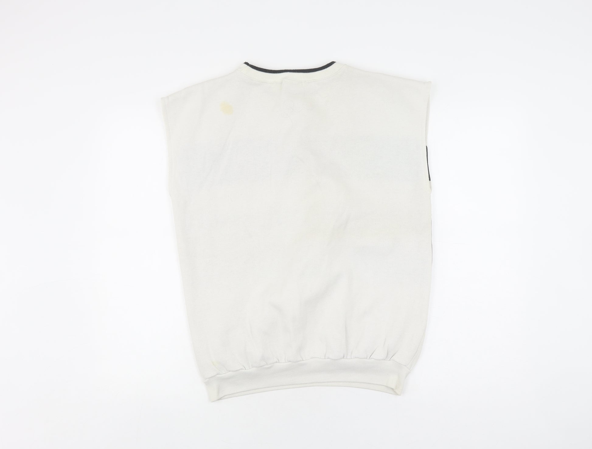 Discover this stylish Aviator Vest, perfect for adding a touch of class to your casual wardrobe. Crafted for men, this medium-sized vest boasts a striking multicoloured striped pattern, making it a versatile piece for all seasons. The crew neck and sleeveless design offer a relaxed yet fashionable fit, ideal for both casual outings and laid-back occasions.Made from a soft blend of 65% polyester and 35% cotton, this jumper ensures comfort while maintaining its shape. The fabric's jersey texture adds a touch of elegance, making it suitable for various occasions. Despite being in used condition with slight wear and a minor stain, it remains a desirable piece at an attractive price.Pair it with your favourite jeans or chinos for a complete look. Don't miss out on this classic Aviator vest that effortlessly blends style and comfort. Machine washable for easy maintenance, this garment is a must-have for your seasonal collection, offering the perfect combination of style, comfort, and affordability.