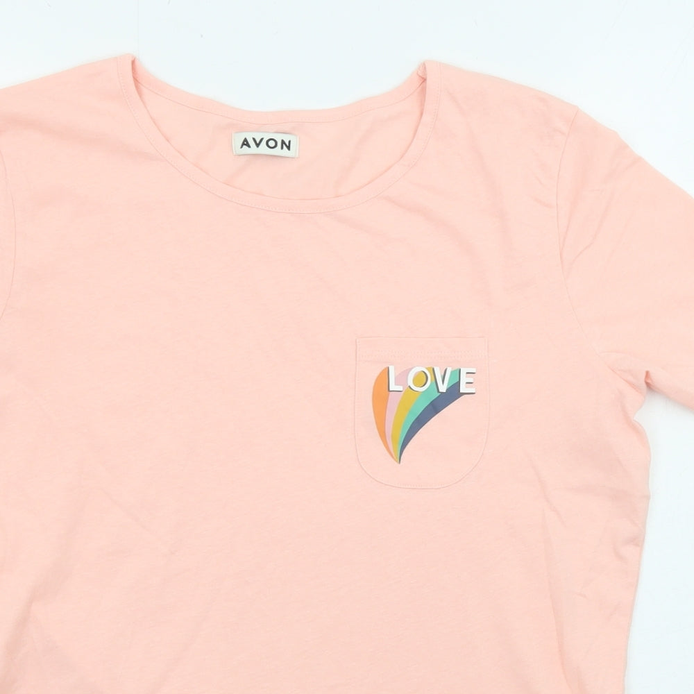 Womens Pink Cotton Basic T-Shirt Size 12 Crew Neck - Love