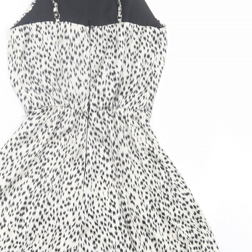 Womens Beige Geometric Polyester Playsuit One-Piece Size 8 Zip