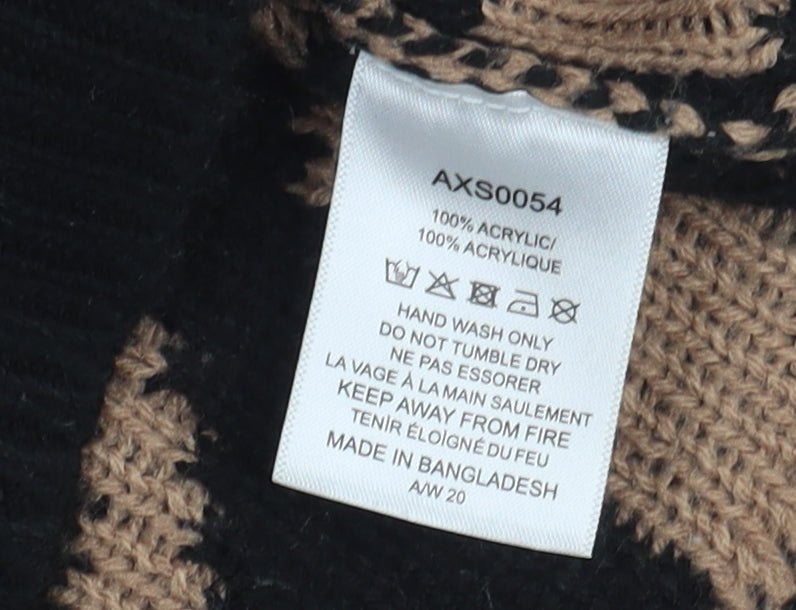 This AX Paris pullover jumper is a chic and stylish addition to your wardrobe. Designed for women, it features a distinctive black animal print that adds a bold touch to any outfit. The jumper is crafted from soft acrylic, providing a comfortable wear that's ideal for both autumn and winter seasons. Its chunky-knit style combined with a regular fit ensures it drapes elegantly over the body. The long sleeves and crew neck enhance its casual appeal, making it perfect for everyday wear or casual outings. With a lightweight feel, it's excellent for layering, ensuring year-round usability. It's in excellent condition with minimal signs of wear, ready to be a staple piece in your collection. This fashion-forward jumper showcases AX Paris’s knack for contemporary design and is perfect for those looking to make a statement with their style.