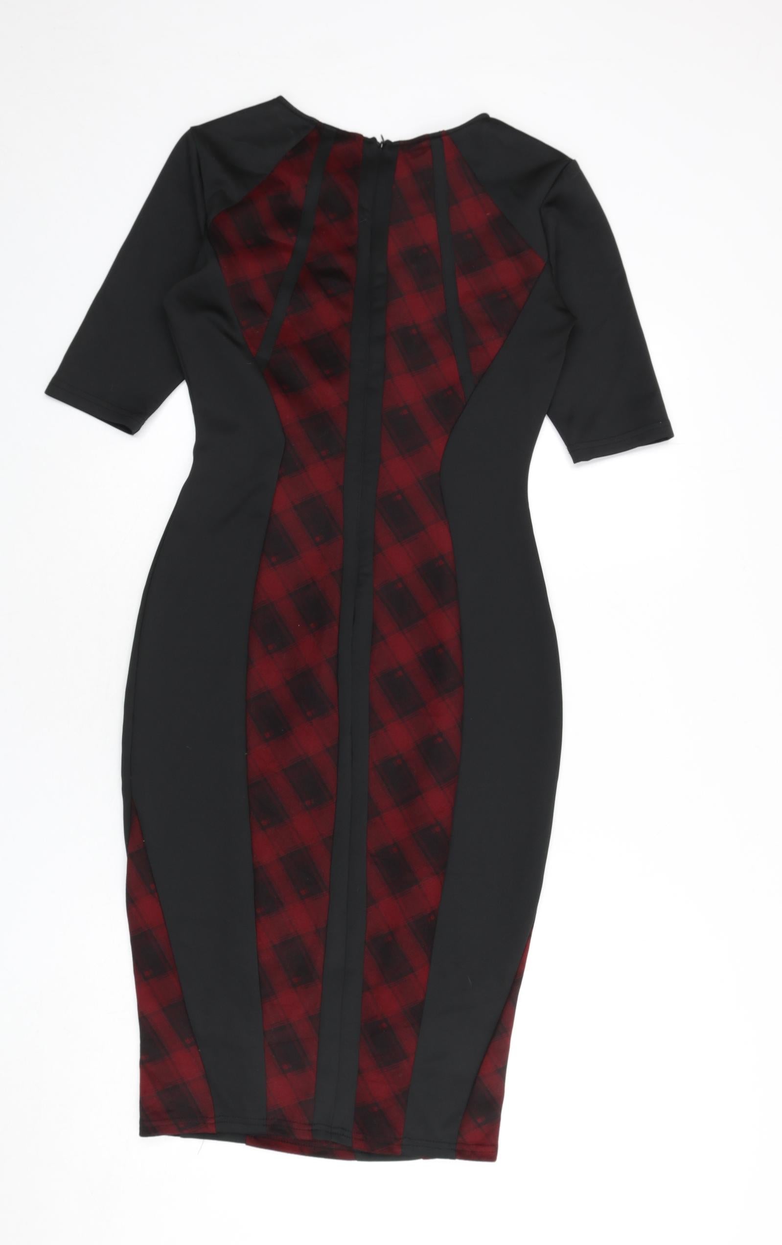 Womens Black Plaid Polyester Bodycon Size 12 Round Neck Zip