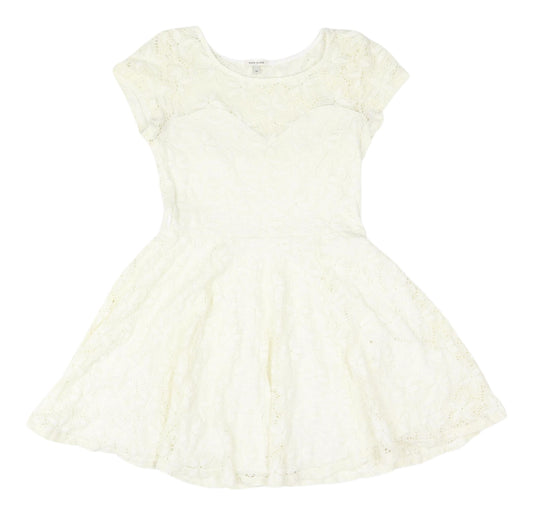 George Womens Pink Cotton A-Line Size 10 Round Neck Zip - Lace Trim