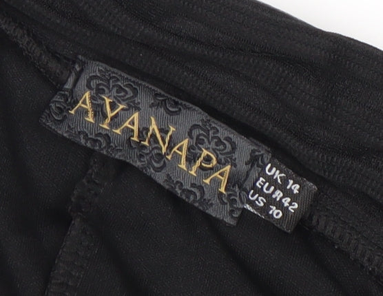 Discover effortless style with this Ayanapa women's midi skirt, available in a sophisticated black hue. Perfect for casual outings, this skirt features a modern striped pattern that adds a touch of elegance to any ensemble. Crafted from a comfortable blend of 95% polyester and 5% elastane, this skirt provides both durability and stretch for a flattering fit. The elastic waistband ensures ease of wear, making it an ideal choice for everyday activities or seasonal transitions in autumn and spring. This versatile piece offers a mid-rise fit, making it both fashionable and functional for various occasions. Whether you're heading to a casual gathering or simply enjoying a laid-back day out, this skirt promises to deliver comfort and style in equal measure. Machine washable for easy care, this skirt is a practical addition to your wardrobe. Available in UK size 14, it caters to regular size types, ensuring a perfect fit. Despite light wear, the skirt remains in excellent condition without any visible damage. Enjoy a blend of chic design and everyday practicality with this timeless Ayanapa piece.