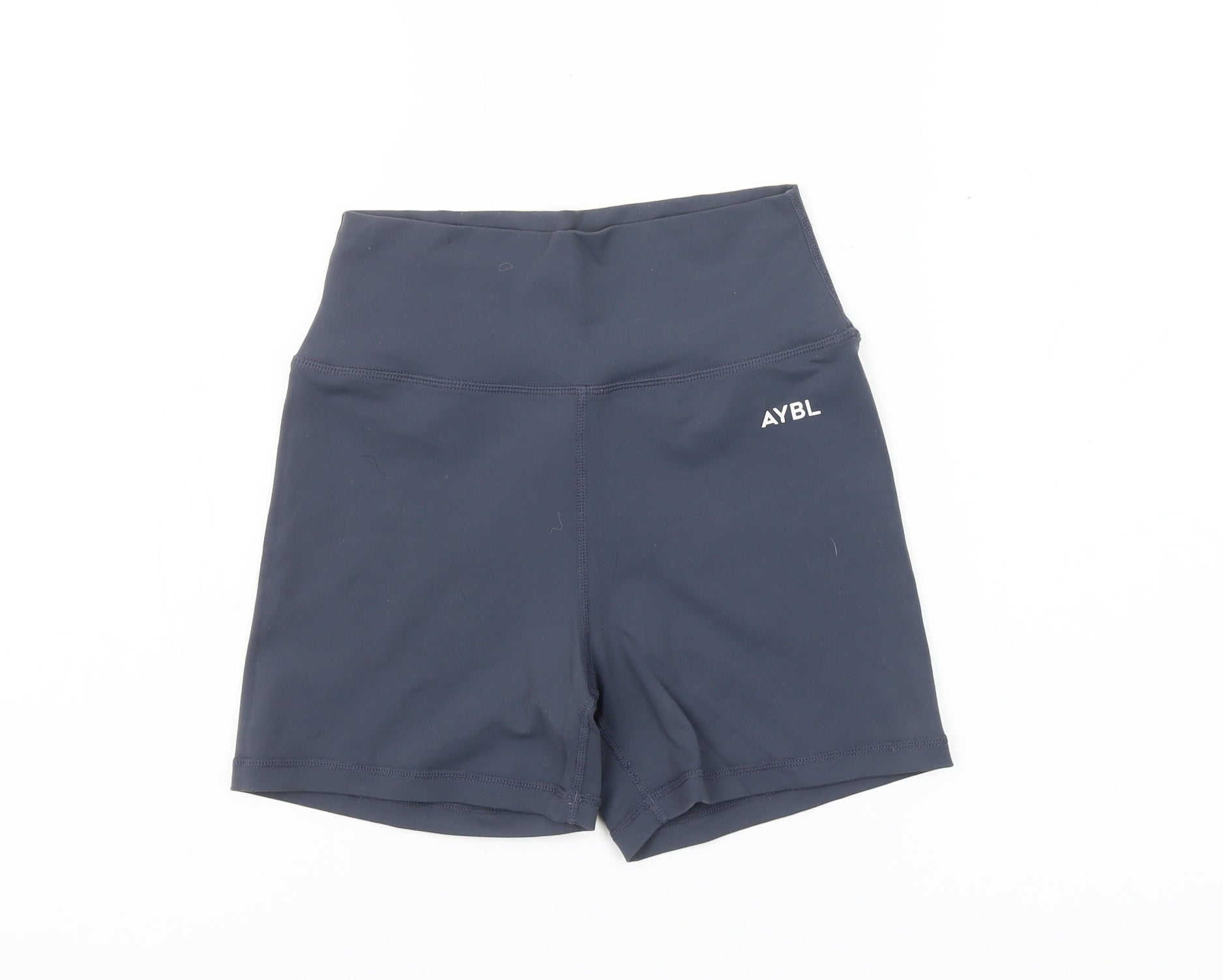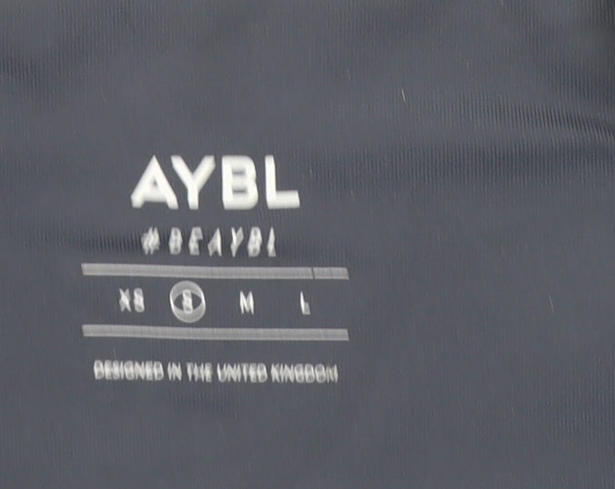 Stay comfortable and supported during your workouts with these AYBL women’s black biker shorts. Designed for optimum performance, these shorts feature a flattering high-waisted fit that provides a secure yet flexible feel, ideal for gym sessions, running, yoga, or general training. The smooth, lightweight jersey fabric is crafted from a premium blend of nylon and elastane, ensuring exceptional stretch and breathability with moisture-wicking properties to help keep you cool and dry throughout your activity. The fabric’s soft-touch finish enhances comfort while maintaining durability and freedom of movement, making them perfect for any fitness enthusiast.These AYBL biker shorts offer a clean, minimal design with a subtle logo printed on the hip for a sleek aesthetic. Built with a supportive waistband, they stay securely in place during even the most intense movements. Whether you’re hitting the gym or wearing them casually, their versatile style pairs effortlessly with sports bras, oversized tees, or workout tanks. Designed in the United Kingdom, AYBL performance wear is recognised for its combination of functionality and fashion, balancing active performance with a flattering silhouette.Ideal for spring and summer training or layering under sportswear, these shorts are machine washable for easy care and retain their shape after many wears. The stretch fabric moves with your body, giving you confidence and comfort no matter your routine. With their simple, performance-driven design and premium materials, these shorts are a must-have essential for any active wardrobe. Condition is excellent, showing minimal signs of gentle previous wear and no visible flaws—offering both quality and value for your workout collection.