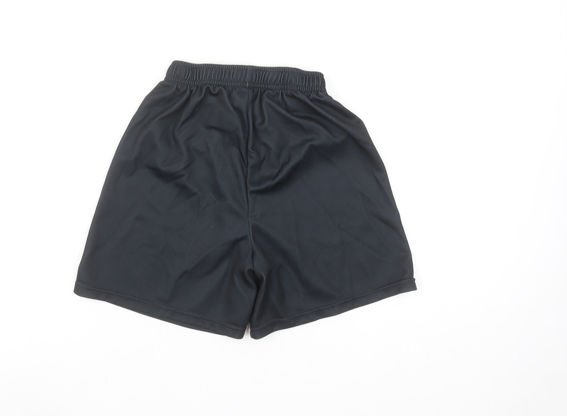 Elevate any young football fan’s kit with these Azzurri Boys’ Athletic Football Shorts in sleek black. Perfectly designed for comfort and performance, these shorts will stand up to school sports, training sessions, and casual activewear alike. Made from lightweight, breathable 100% polyester fabric, they are quick-drying and moisture-wicking, ensuring kids stay cool and comfortable during any game or workout. The regular fit allows free movement, while the elastic waistband provides a snug yet flexible hold suitable for growing boys. The design is simple yet stylish, featuring the Azzurri logo on one leg and a detailed football club crest emblem on the other, highlighting their sporty authenticity. That makes them ideal for football practice, casual wear, or representing a local team. With a mid-rise cut and flat front, these shorts ensure a flattering and practical fit without added bulk. The high-performing jersey fabric gives excellent durability, meaning they’re just as tough as they are comfortable. Perfect for the summer season or indoor sports, these shorts offer maximum ease without compromising on style. Their relaxed fitting and breathable construction make them suitable for activities such as football, gym training, or even outdoor play. Thanks to their easy-care, machine washable fabric, they are effortless to keep clean and ready for action. In excellent pre-owned condition with no tags and no visible defects, these shorts represent great value for active boys who love to move. Designed for functionality and comfort, they are an ideal addition for any young athlete’s wardrobe — whether for school PE sessions or weekend training. The combination of simplicity and sporty appeal ensures they remain a versatile staple throughout the season. Bring home performance and durability with these Azzurri Boys' Black Football Shorts — the ultimate choice for young sports enthusiasts in need of reliable, breathable, and stylish activewear.