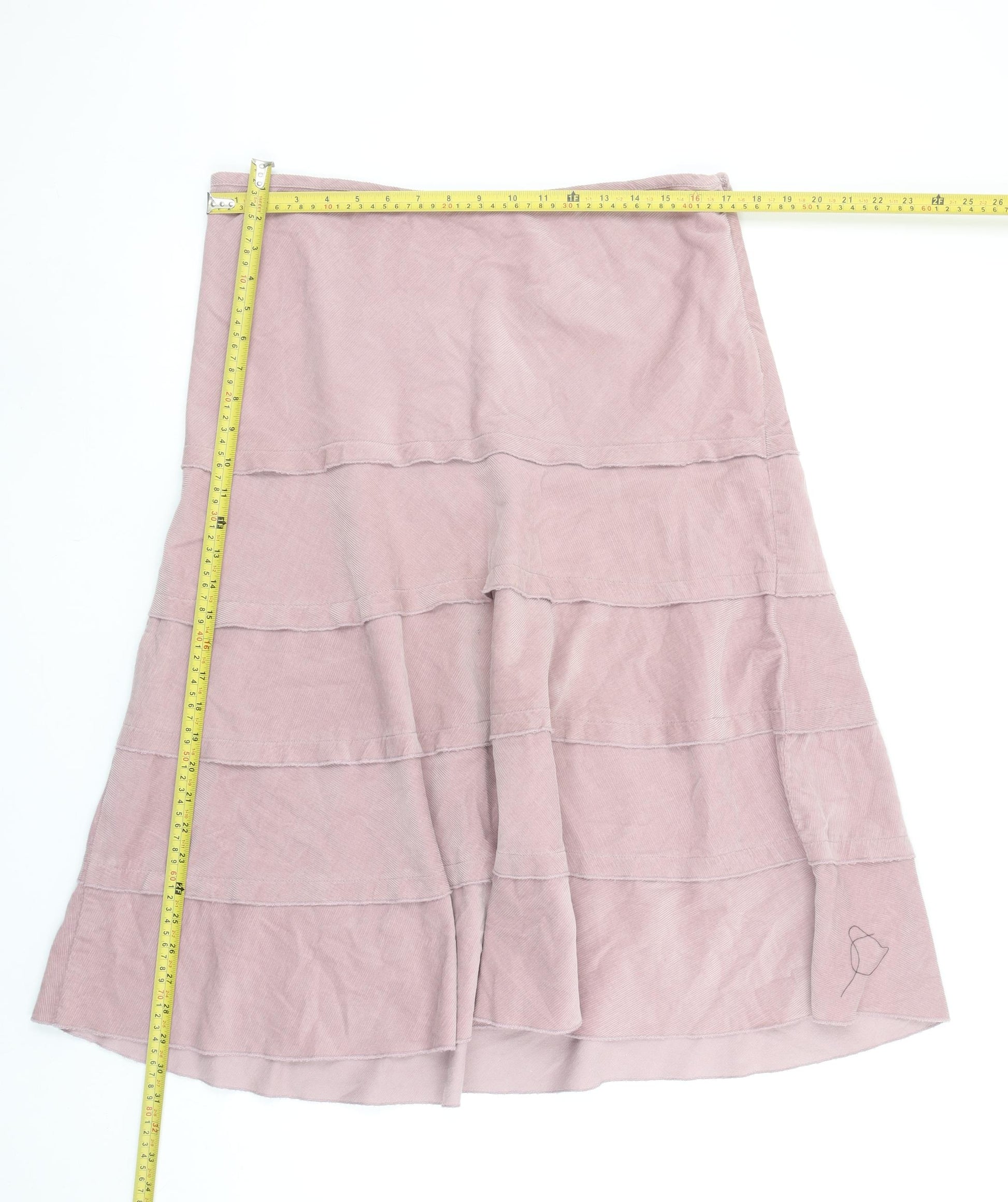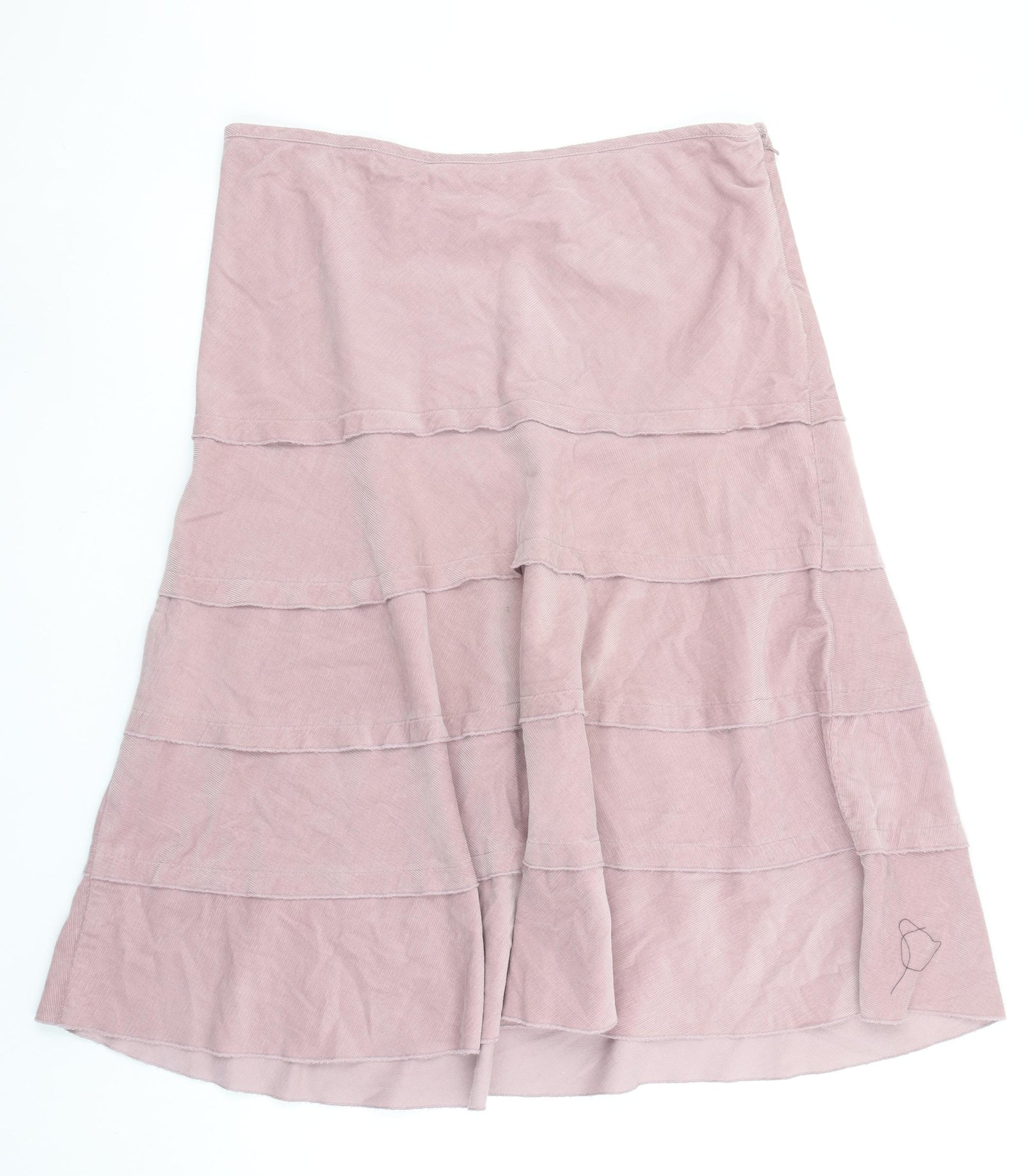 Add a touch of effortless elegance to your everyday wardrobe with this lovely pink A-line skirt by b casual. Crafted from 100% soft, breathable cotton, it promises comfort and easy wear throughout the day. The mid-length design, falling gracefully below the knee, creates a feminine and flattering silhouette while allowing freedom of movement. Its tiered construction adds gentle texture and dimension, making it the perfect choice for both relaxed and semi-casual outings. Designed in a versatile dusky pink shade — described as ‘Pink Dusk’ — this skirt pairs beautifully with blouses, t-shirts, or lightweight summer knitwear, creating a variety of looks from daytime chic to weekend comfort. The smooth side zip fastening ensures a secure yet discreet fit, keeping the focus on its flowing, graceful drape. Ideal for spring, summer, and autumn wear, the skirt is both lightweight and breathable, perfect for keeping you cool during warmer months while still easy to layer with tights and boots as the seasons shift. Its simple twill cotton fabric offers durability without compromising on softness, making it a wardrobe favourite you’ll reach for again and again. Easy to care for, this skirt is machine washable and designed to maintain its shape with minimal effort. Whether you style it with sandals and a denim jacket for a relaxed afternoon look or elevate it with heels and a tucked-in blouse for casual gatherings, this b casual pink cotton skirt captures timeless femininity and comfort. In excellent pre-loved condition with only minimal signs of gentle use, it is a great value addition to your collection. A versatile and graceful piece that seamlessly balances relaxed styling with understated elegance, perfect for any woman seeking reliable everyday charm.