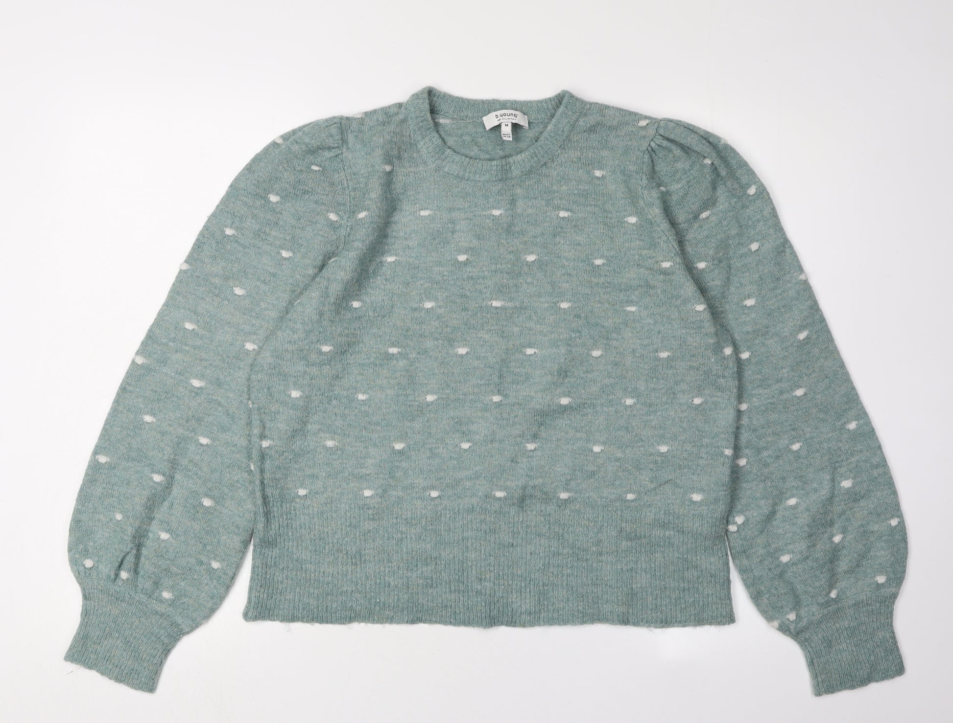 Elevate your casual wardrobe with this charming b.young Women's Pullover Jumper. Crafted for comfort and style, this elegant piece is perfect for day-to-day wear. With its versatile green hue, it pairs effortlessly with your favourite jeans or skirts. The crew neck design lends a classic touch, while the long puff sleeves add a contemporary flair to your look. Made from a soft wool blend knit, this jumper offers warmth and comfort, making it an ideal choice for cooler days. Although previously owned, it remains in excellent condition, showing no signs of significant wear. Whether you're dressing up for an outing or simply relaxing at home, this b.young jumper is a versatile addition to your collection.