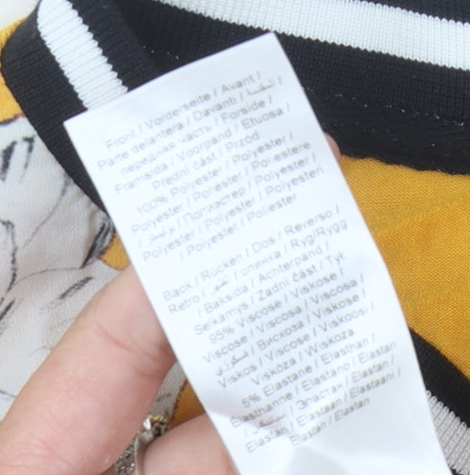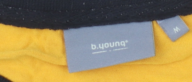 Elevate your casual wear with this vibrant b.young ringer T-shirt, showcasing a stunning floral pattern against a bright yellow backdrop. Perfect for women seeking both comfort and style, this top features a classic crew neck and short raglan sleeves with contrasting trims, adding a chic touch to your everyday looks. Crafted from a unique blend of 100% polyester at the front, complemented by 95% viscose and 5% elastane at the back, this piece ensures a pleasant wear experience. The lightweight material makes it ideal for spring and summer seasons, while its regular fit promises a flattering silhouette. Designed as a pullover, this T-shirt combines convenience with style, making it perfect for various casual occasions. Despite slight wrinkles, it remains in excellent condition, ensuring a fashionable addition to your wardrobe at a competitive price. Whether you're out for a casual stroll or enjoying a sunny day out, this b.young floral T-shirt will be your go-to choice, offering both flair and function. Machine washable for easy garment care, it ensures durability and ease of care, making it a worthy investment for the fashion-conscious woman.