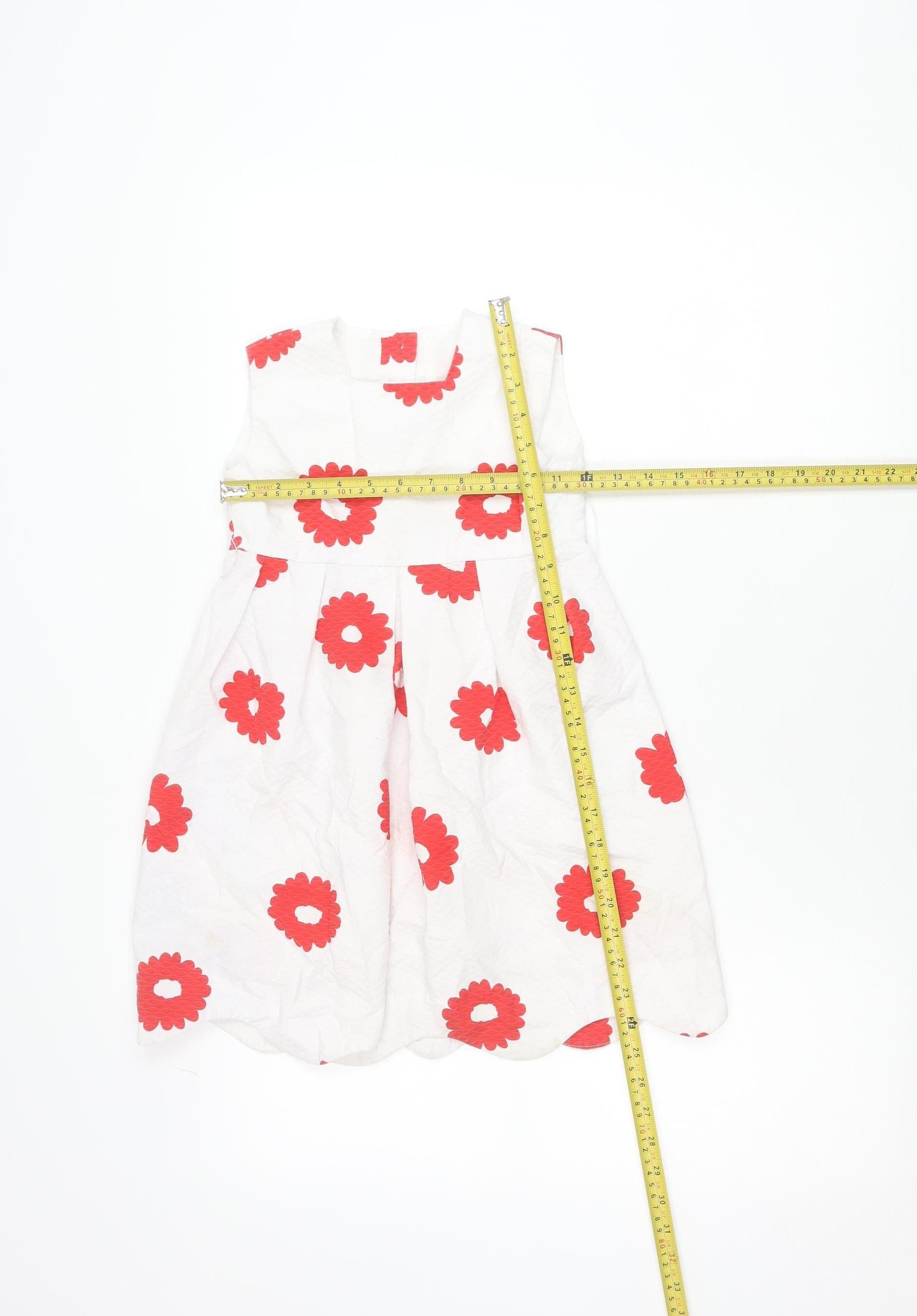 Girls White Red Floral A-Line Sleeveless Dress Size 5 Years