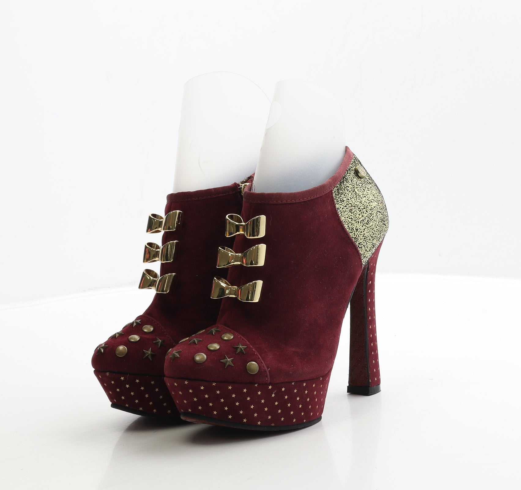 Womens Red Geometric Suede Platform Heel UK 4 37 - Star Detail
