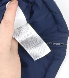 Keep your young explorer warm and stylish with this babyGap Boys Blue Camouflage Sleeveless Bodywarmer. Tailored for comfort and practicality, this piece is ideal for layering through the colder months. Crafted entirely from durable polyester, it offers a soft yet robust outer shell that retains warmth while allowing breathability. The blue camouflage design adds a playful, adventurous touch that’s perfect for boys who love the outdoors. Designed with a high neck to shield against chilly winds, this gilet-style bodywarmer features a smooth full-zip fastening, two convenient front pockets for small essentials, and a neatly finished hem to maintain a snug fit. The lightweight padded lining gives extra insulation without bulk, keeping this bodywarmer ideal for both Autumn and Winter wear. Perfect for casual outings, school days or active outdoor play, this versatile piece complements a wide range of outfits — from jeans and jumpers to joggers and hoodies. Its classic cut and comfortable fit ensure easy movement and all-day wearability. Machine washable for low-maintenance care, this dependable everyday essential combines practicality with the quality you expect from babyGap. In excellent pre-loved condition with no visible flaws or major signs of wear, it offers great value for families seeking well-made, lasting outerwear. Make this blue camo bodywarmer the go-to layer for your little one this season and enjoy both warmth and trendsetting style in one practical piece.