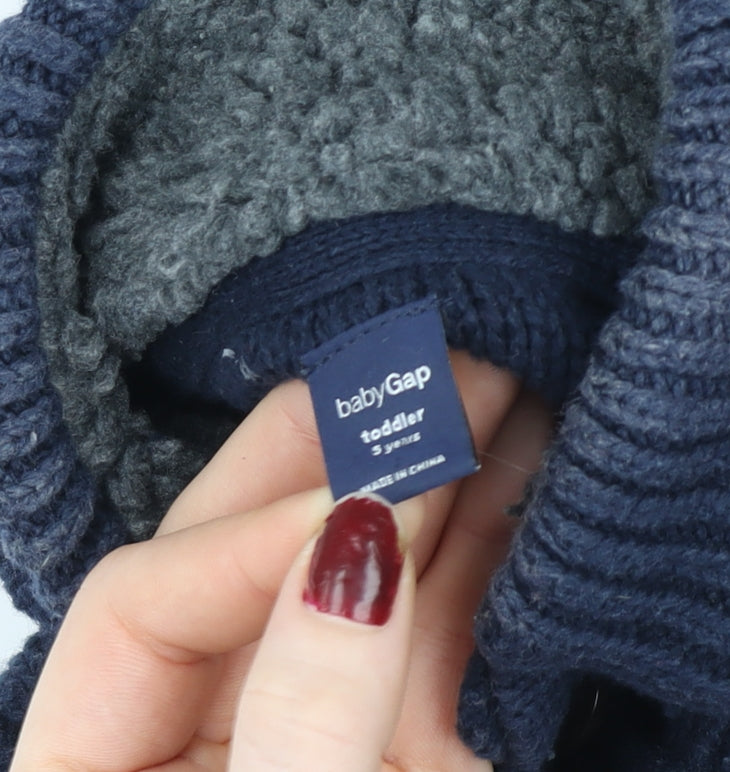 Keep your little one cosy and stylish with this lovely babyGap Henley jumper for girls aged 5 years. Crafted from a quality cotton, wool, and nylon blend, it provides exceptional warmth and comfort for cooler autumn and winter days. The classic cable knit design in a rich navy blue adds a timeless touch, while the button-up Henley neckline gives it a charming and practical appeal. Designed with attention to detail, it features elbow patches and a soft fleece-lined collar for additional warmth and comfort. This jumper offers a relaxed yet snug fit that allows for freedom of movement, making it perfect for everyday casual wear, playdates, or family outings. The soft knit texture feels gentle against the skin, ensuring lasting comfort throughout the day. Although pre-loved, this jumper remains in very good condition, showing only minor bobbling from light previous use. With its versatile style, this jumper pairs beautifully with jeans, leggings, or skirts for a classic and cosy seasonal look. Authentic babyGap quality ensures durability and long-lasting wear. Ideal for parents looking for stylish but practical knitwear for their little one, this jumper brings warmth, comfort, and timeless design together in one delightful piece. Easy-care fabric makes it convenient for machine washing, so it remains a wardrobe favourite for the seasons to come. Add this navy blue babyGap jumper to your child’s wardrobe for a dependable, adorable, and comfortable knitwear essential.