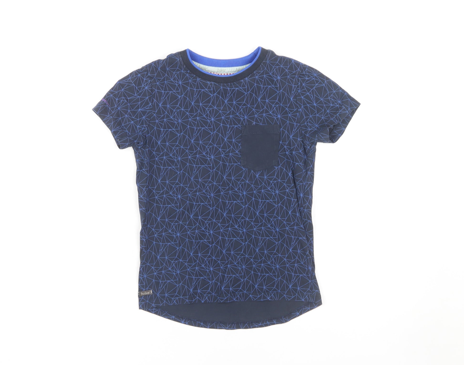 This Baker by Ted Baker boys' T-shirt offers a stylish geometric pattern in a cool blue tone, perfect for everyday casual wear. Crafted from 100% cotton, it ensures comfort and breathability, ideal for active youngsters. Featuring a crew neck and short sleeves, this T-shirt provides a regular fit with a convenient pocket detail for added flair. Designed for all seasons, it pairs effortlessly with any outfit, making it a versatile wardrobe staple. Easy to care for with its machine washable fabric, and in new condition with tags included, this T-shirt is not only a functional choice but a fashionable one too. A great option for casual outings or playdates, giving your child both style and comfort. Get this piece today and enjoy a blend of quality and contemporary design.