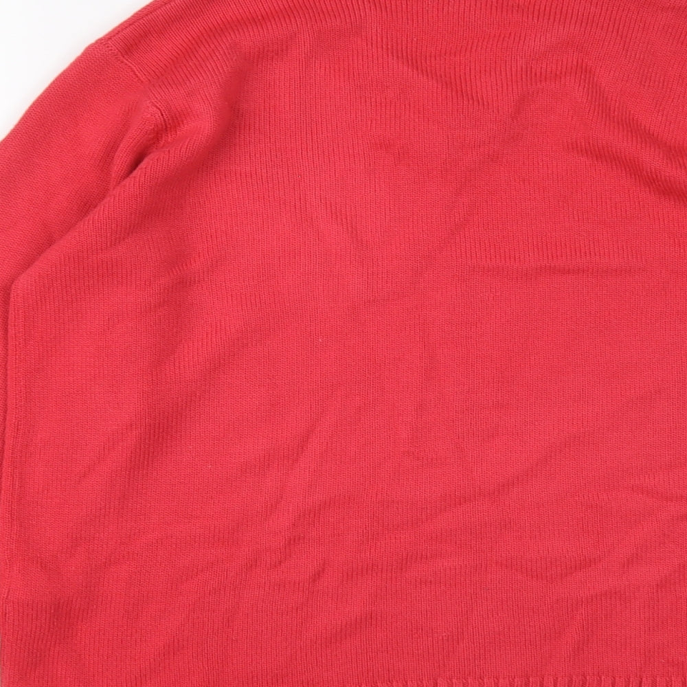 Womens Pink V-Neck Acrylic Pullover Jumper Size 18