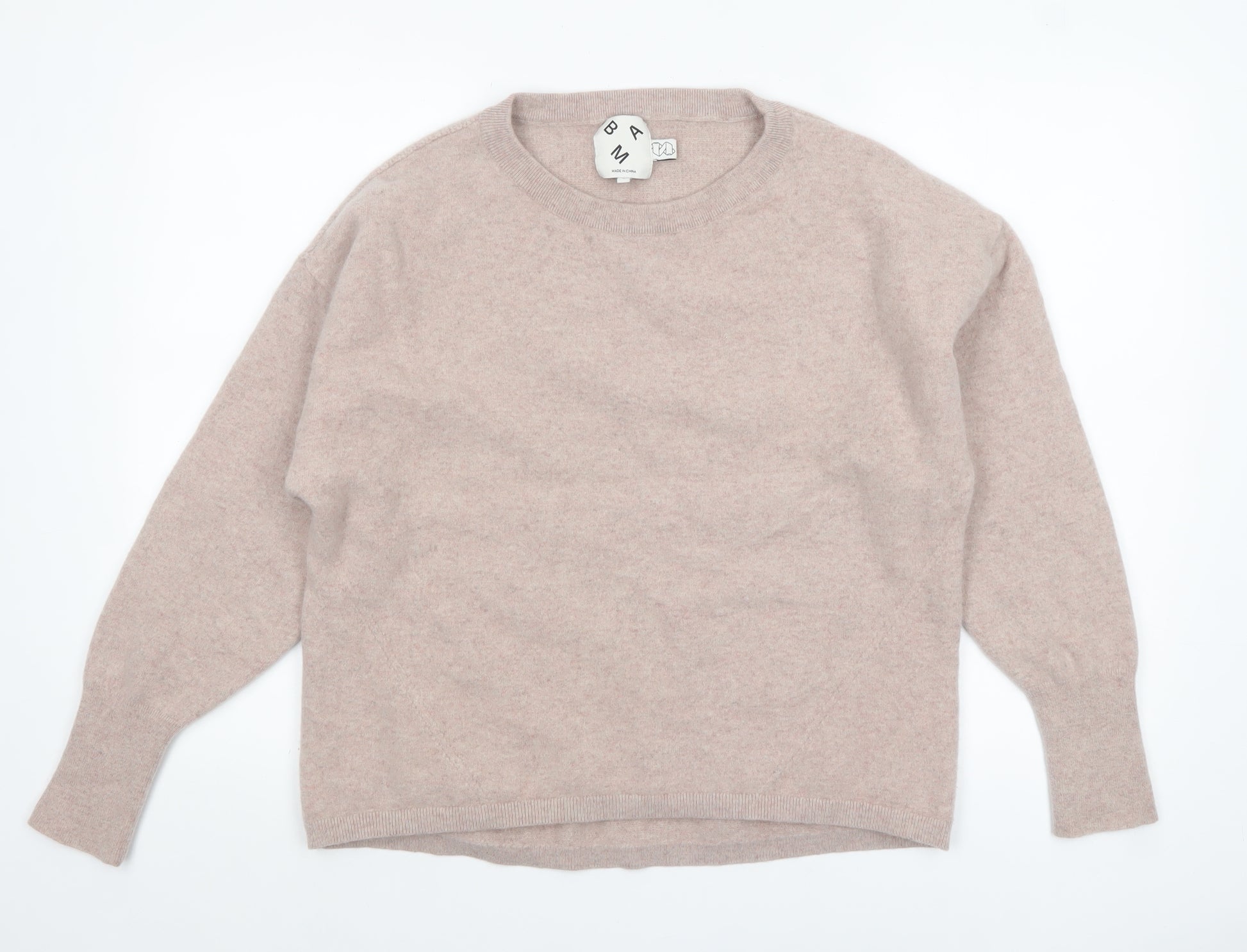 Elevate your casual wardrobe with this beautifully soft women’s jumper from BAM. Crafted from 100% wool, this luxuriously cosy piece combines style and comfort with ease, perfect for layering throughout the cooler months. The warm beige tone provides a versatile neutral base that complements both everyday and smart-casual looks. Designed in a relaxed fit, the jumper drapes effortlessly on the body, ensuring a flattering silhouette that is easy to pair with jeans, skirts, or tailored trousers. The crew neckline and long sleeves deliver classic appeal, while the fine knit texture keeps the look refined yet cosy. This pullover’s lightweight yet insulating wool composition makes it ideal for layering in autumn and winter, offering natural breathability and warmth without bulk. Subtle ribbed trims at the hem, cuffs, and neckline provide stretch and structure, enhancing the garment’s durability and fit. BAM’s commitment to quality is reflected in the premium fabric and careful construction of this jumper – an essential addition to any wardrobe that values both comfort and sustainability. Perfect for relaxed weekends, office wear, or travel, this timeless piece adapts effortlessly to multiple occasions. Pair it with denim for a laid-back look, leggings and boots for a relaxed day out, or add a structured coat for a more sophisticated finish. In excellent pre-loved condition, this jumper has been gently worn with no visible marks, stains, or damage, retaining its softness and shape. A truly versatile, eco-conscious choice that offers both elegance and practicality for the contemporary woman.